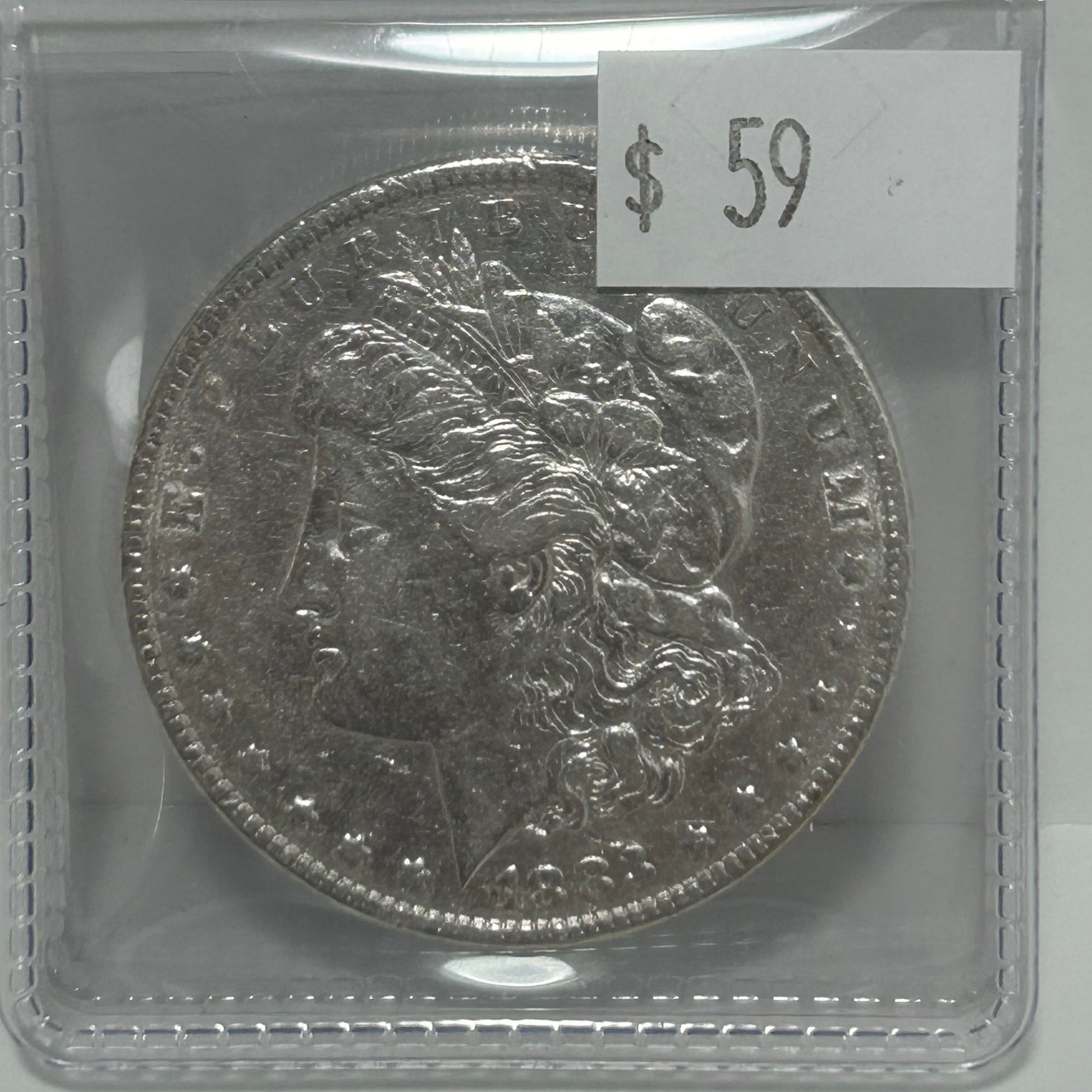 1883 Morgan Silver Dollar in Clear folding case