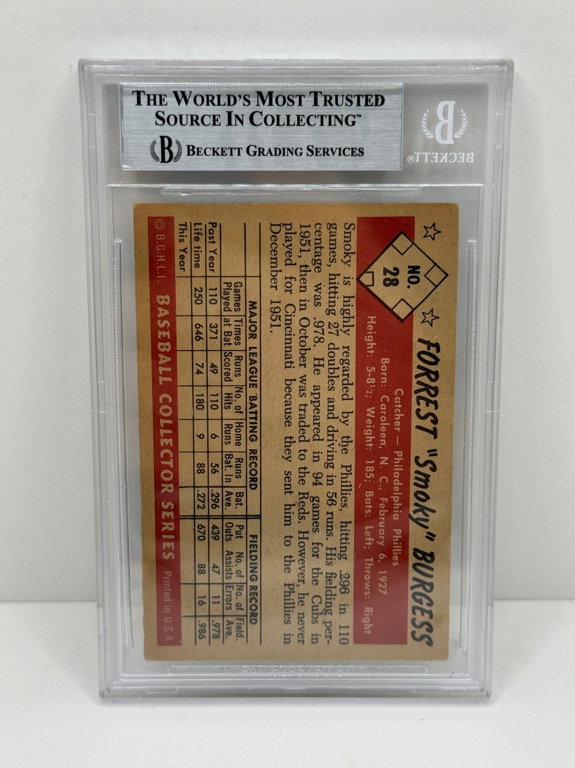 1953 Bowman Color Smoky Burgess #28 Auto Beckett Authenticated Deceased in 1991