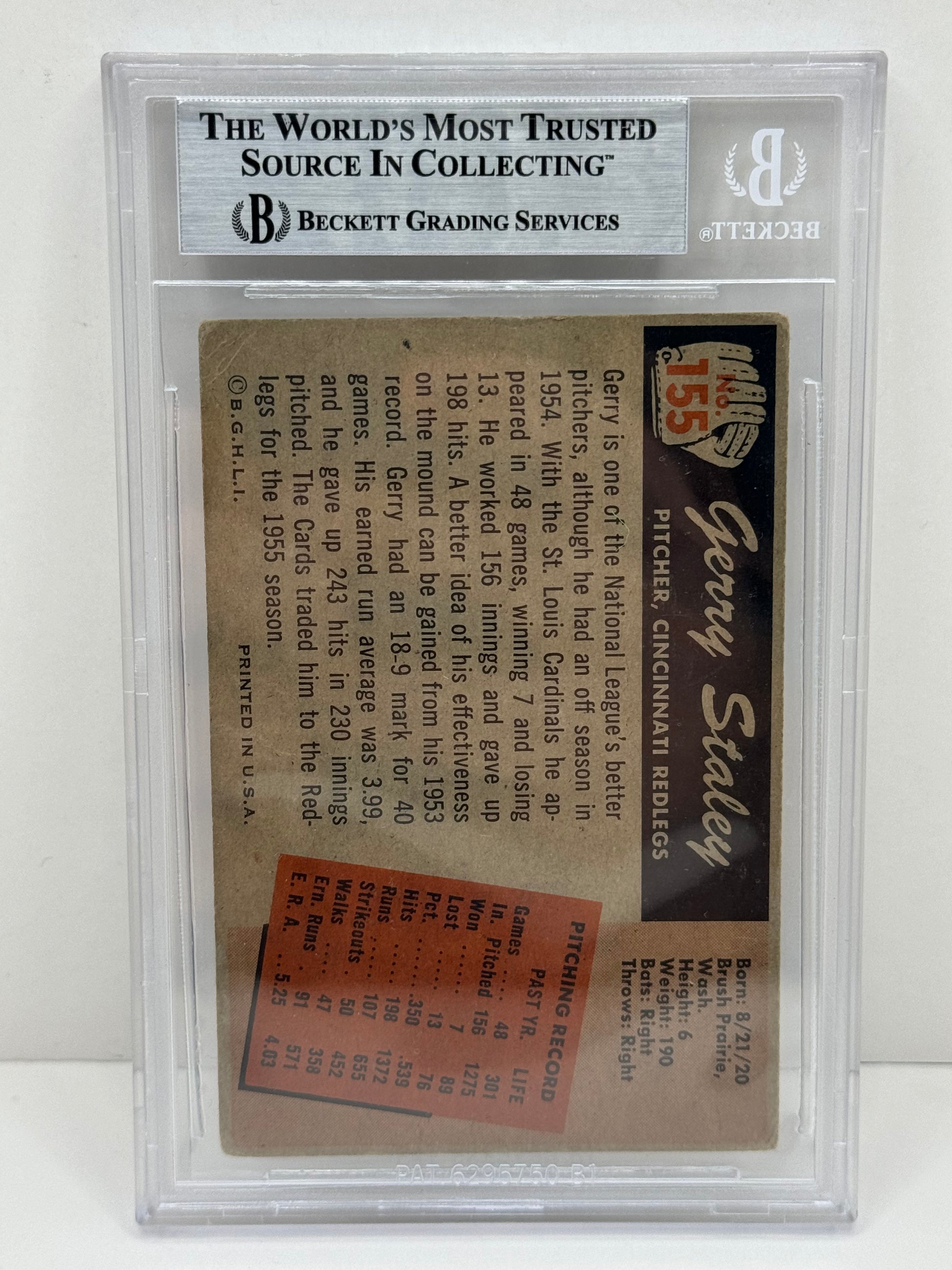 1955 Bowman Gerry Staley #155 Auto Beckett Authentic Deceased in 2008
