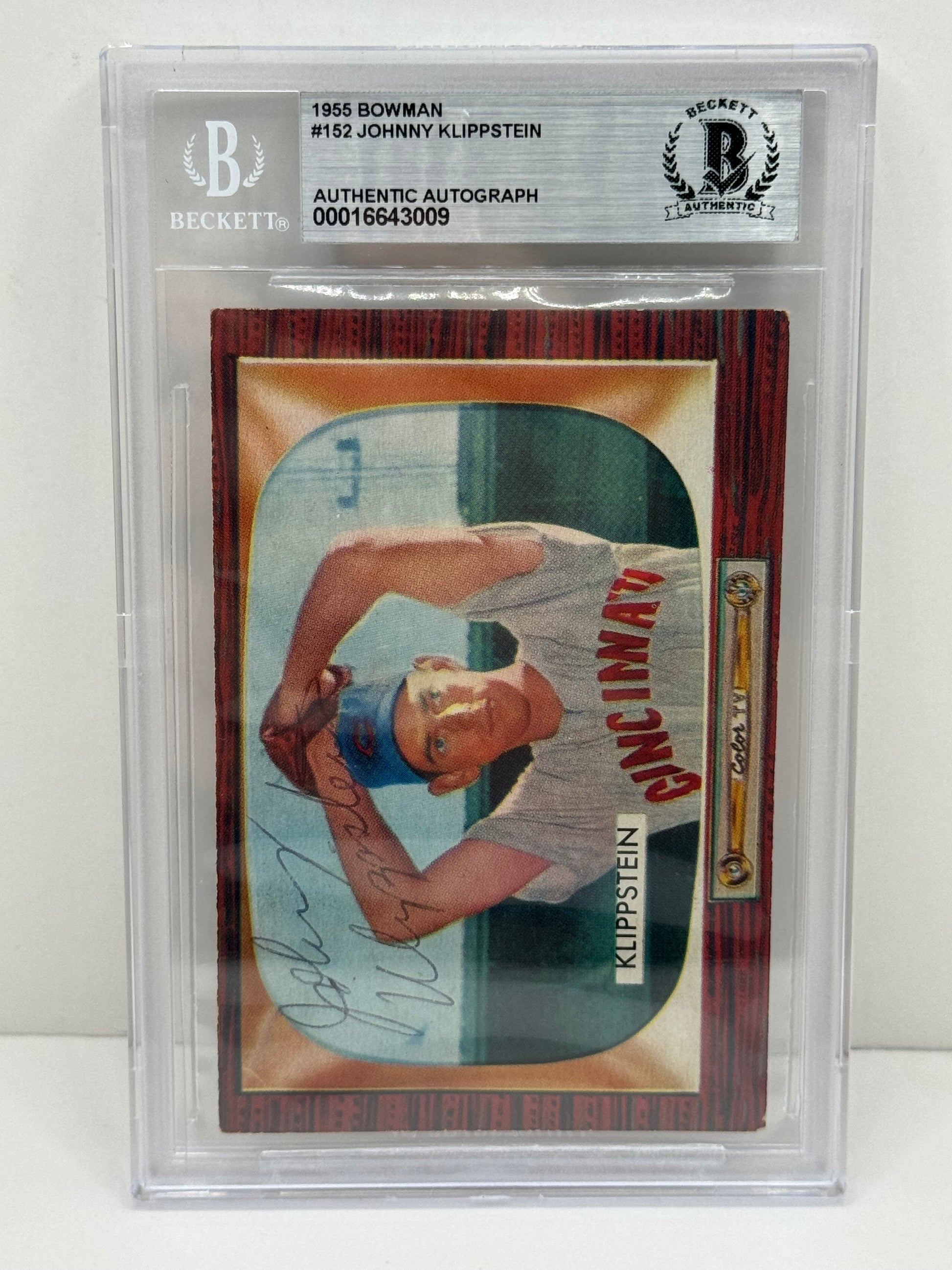 1955 Bowman Johnny Klippstein #152 Auto Beckett Authentic Deceased in 2003