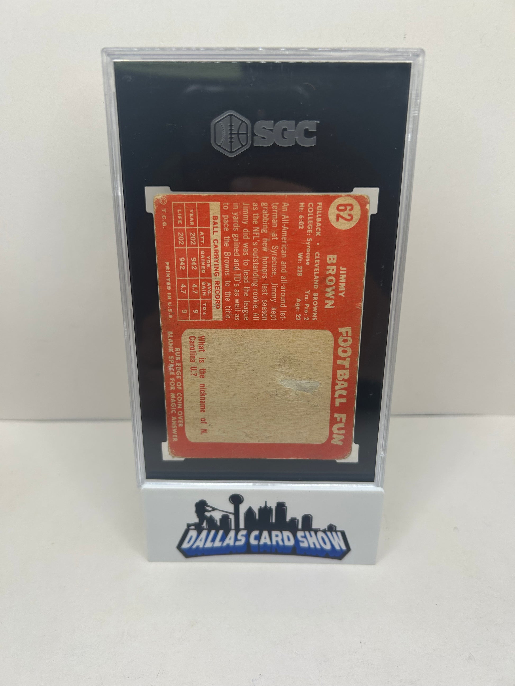 1958 Topps #63 Jim Jimmy Brown SGC 1 RC Rookie