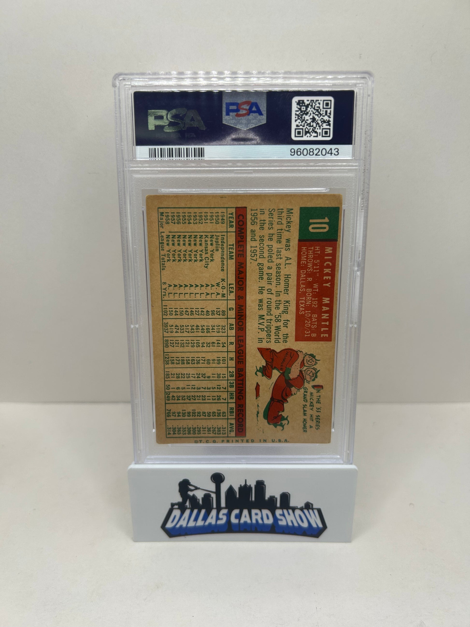 1959 Topps #10 Mickey Mantle PSA 3 New York Yankees