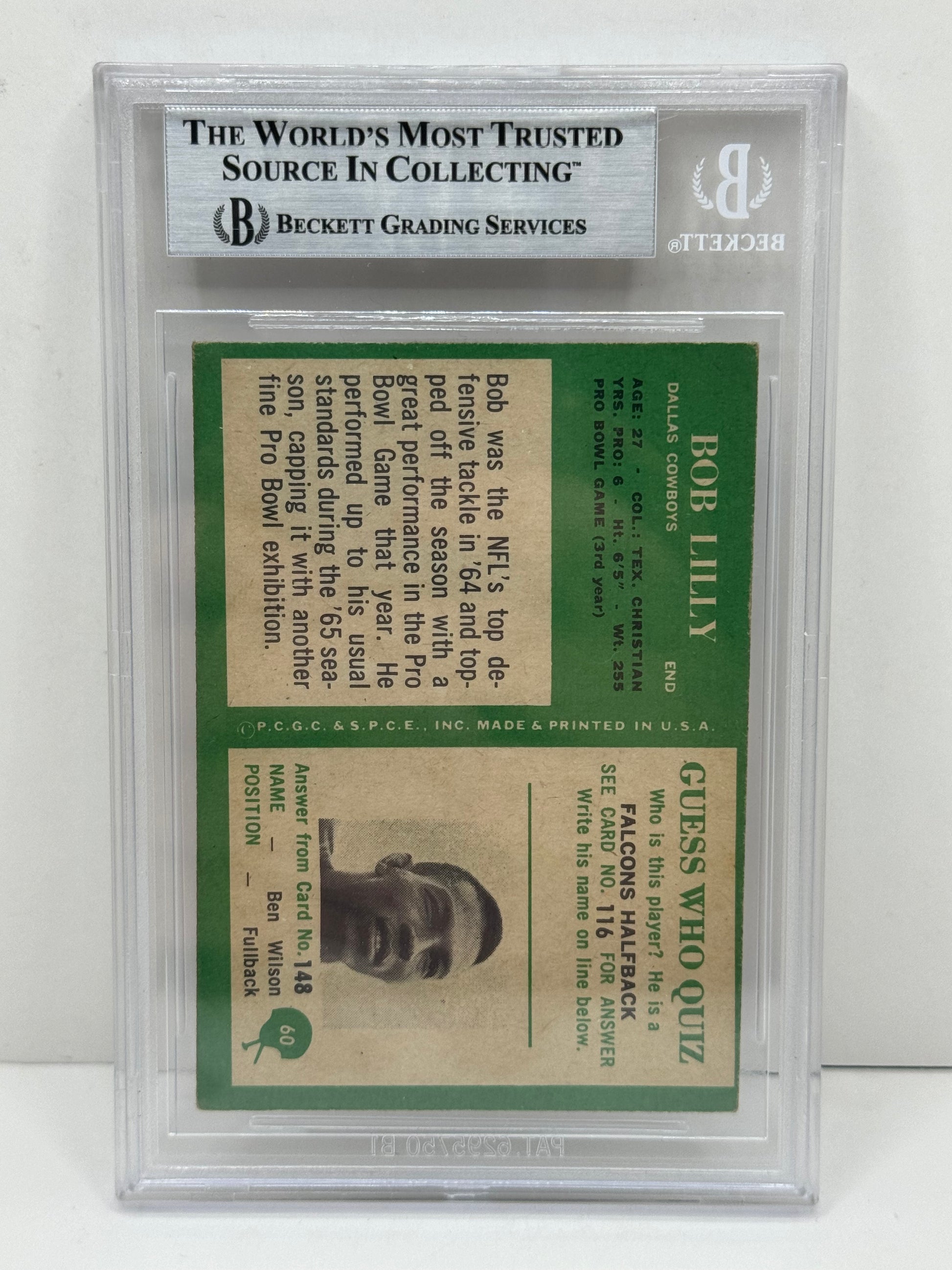 1966 Philadelphia #60 Bob Lilly Beckett Witnessed Beckett Authentic (4990)