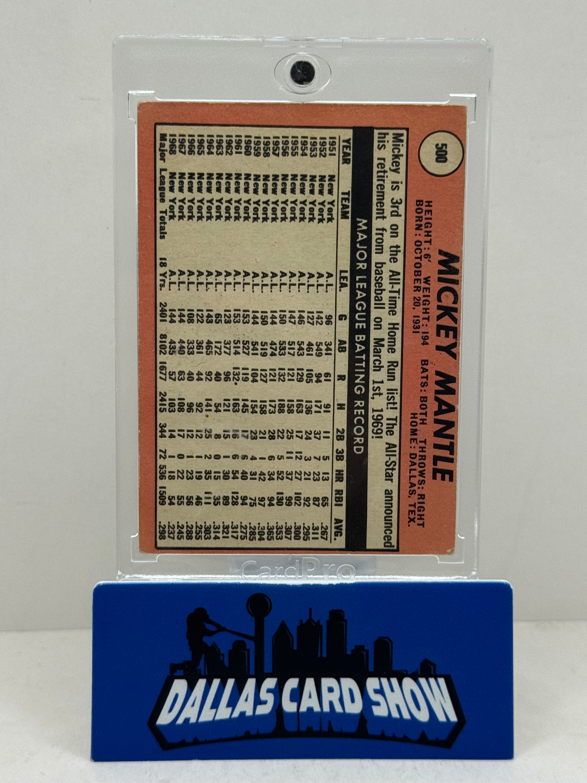 1969 Topps #500 Mickey Mantle VG New York Yankees