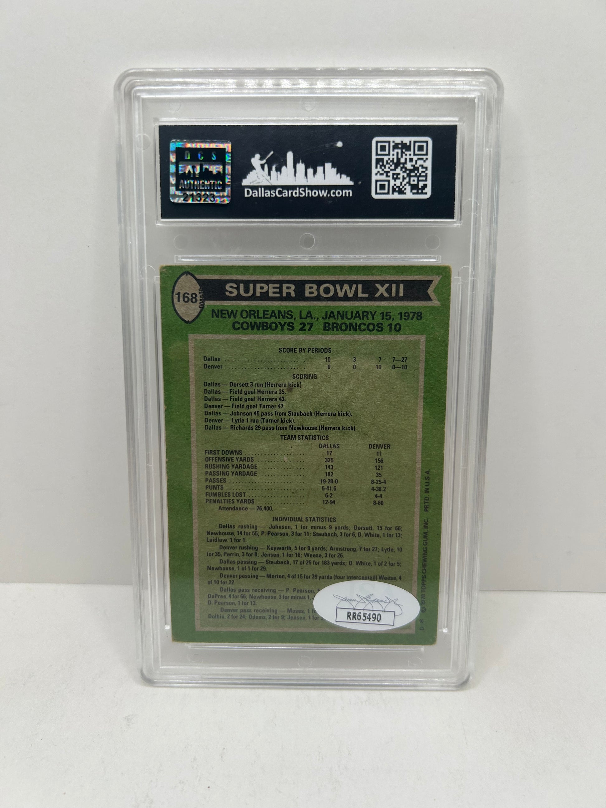 1978 Topps Super Bowl Xll #168 Tony Dorsett Autograph JSA Authenticated