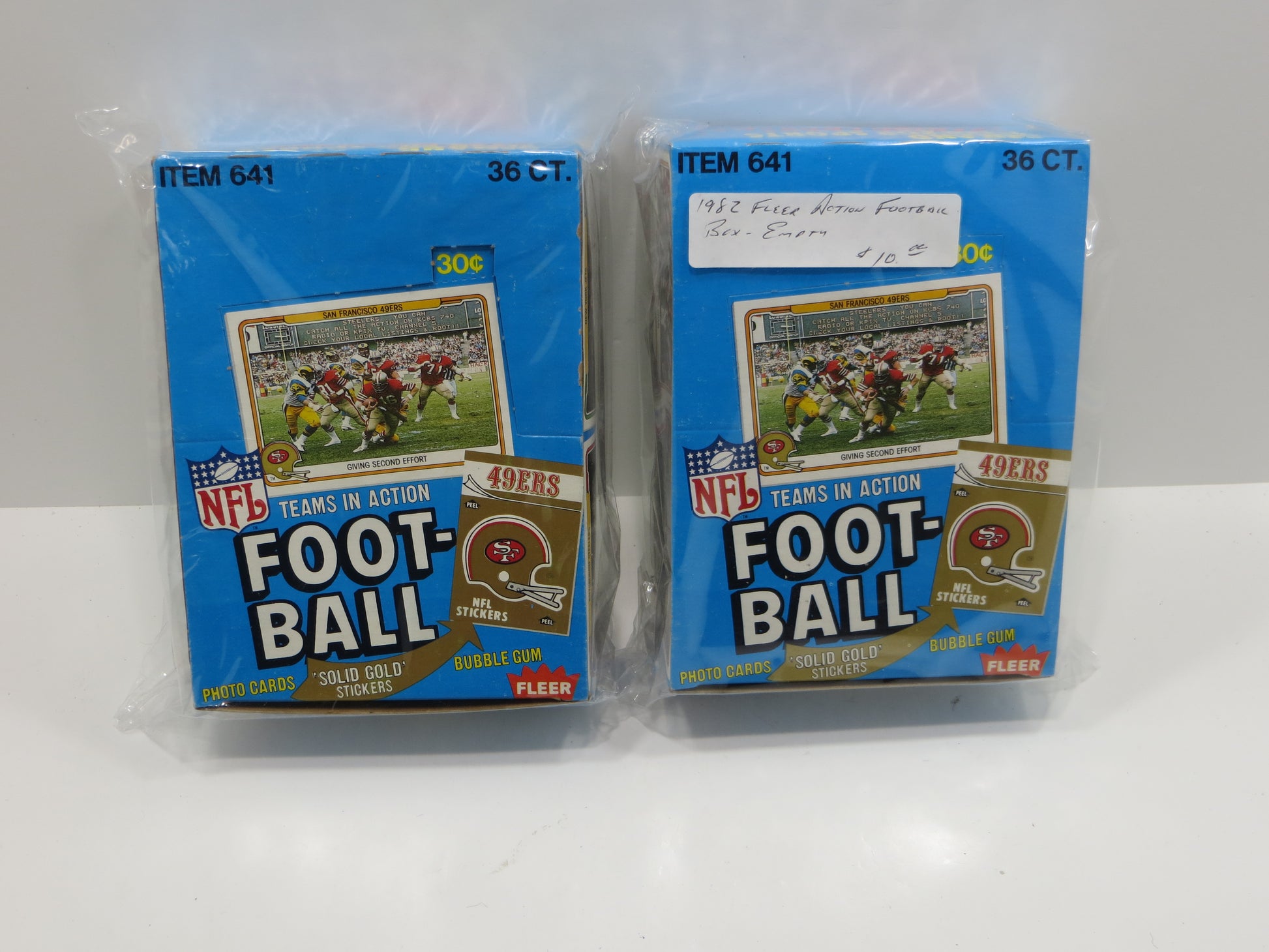 1982 FLEER TEAMS IN ACTION FOOTBALL EMPTY WAX BOX Lot of 2 BOXES