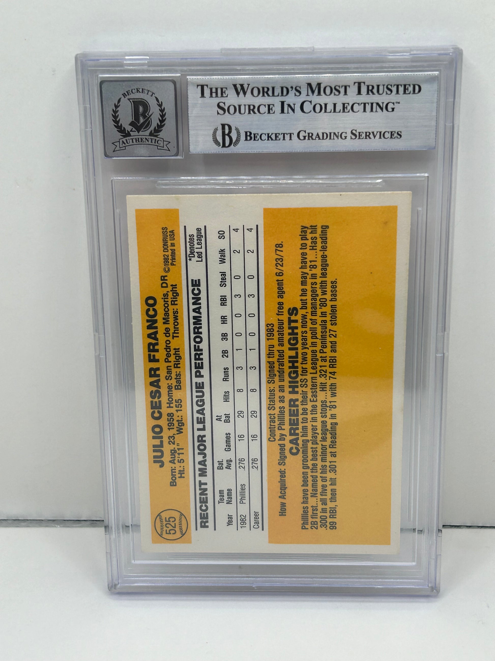 1983 Donruss Julio Franco #525 Auto Beckett Witnessed Beckett 10 Autograph (4692)