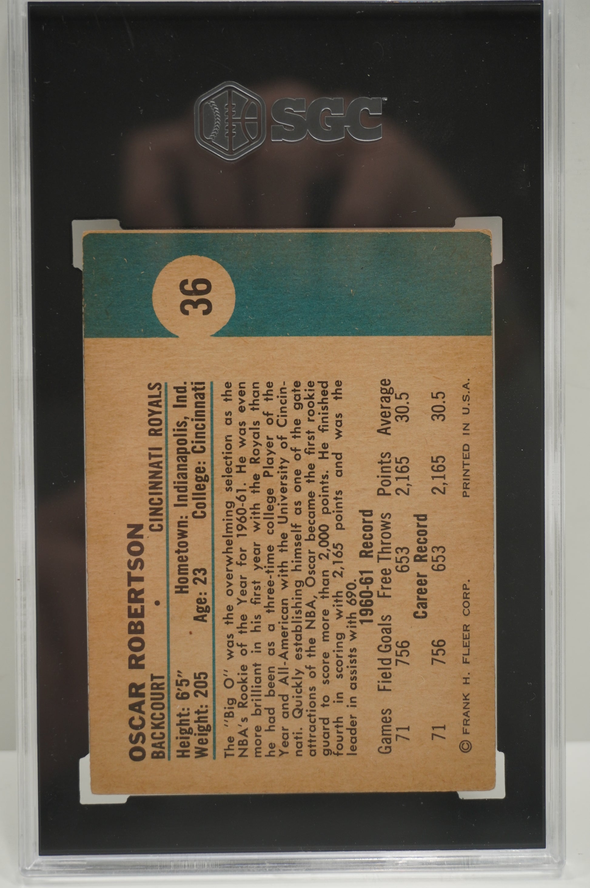 1961-62 FLEER Oscar Robinson #36 SGC 6 CINCINNATI ROYALS
