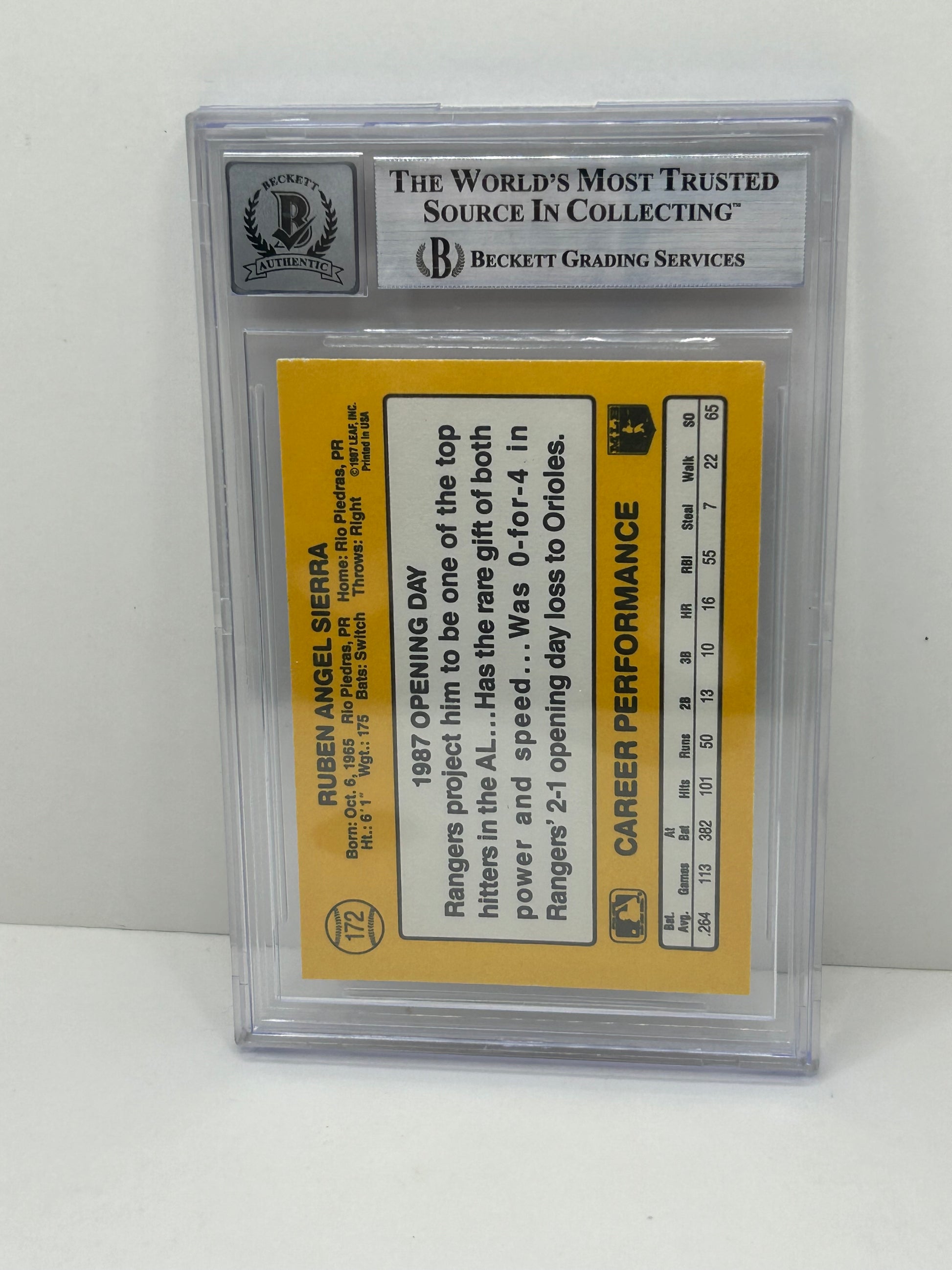 1987 Donruss Opening Day Ruben Sierra #172 Auto Beckett Witnessed Beckett 10 Auto (4710)