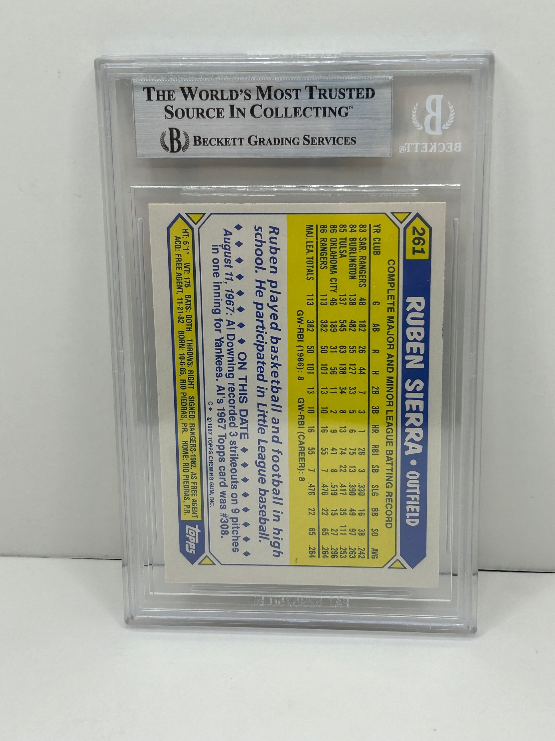 1987 Topps Tiffany Ruben Sierra #261 Auto Beckett Witnessed Beckett Authentic (5000)