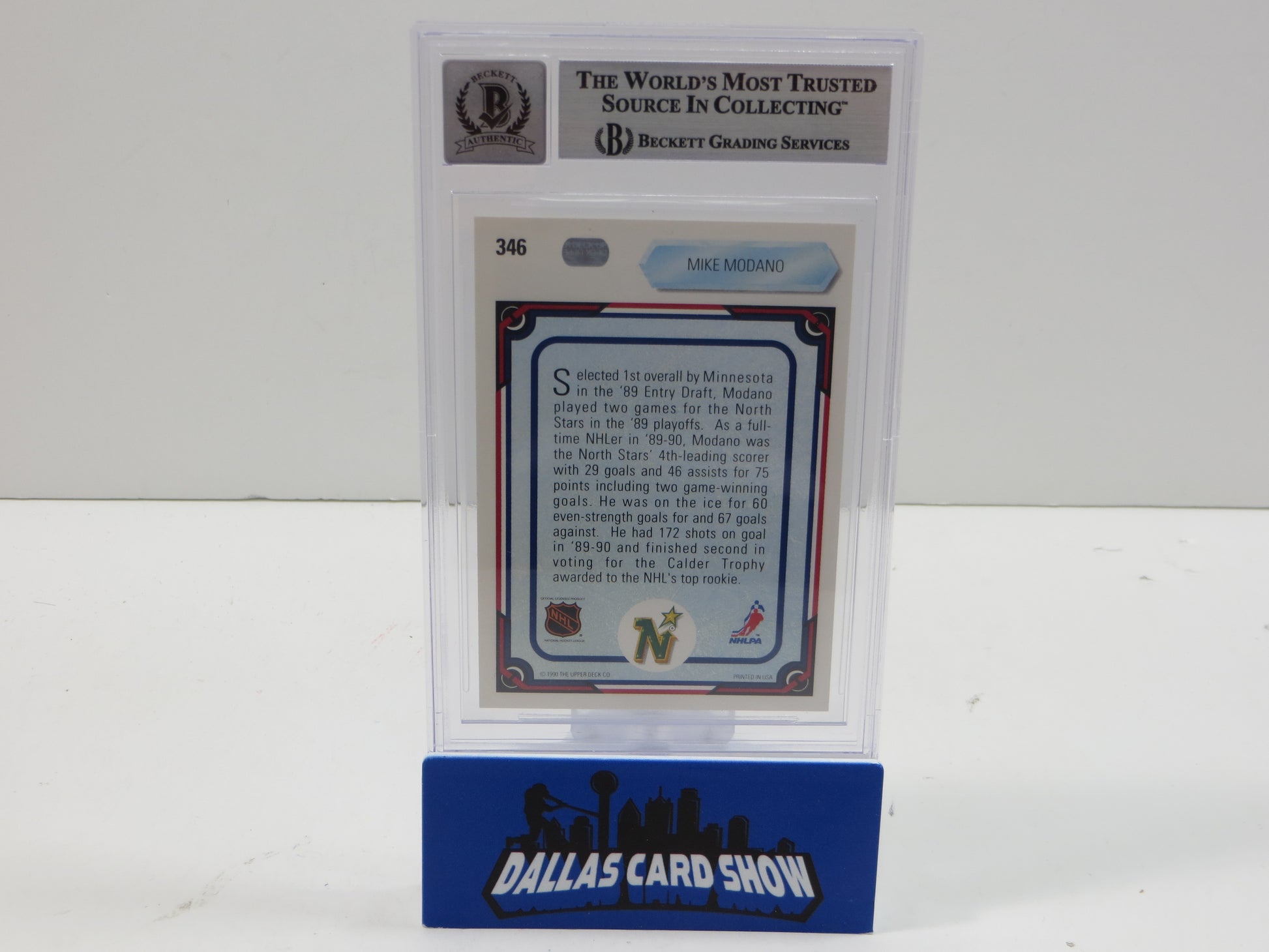 MIKE MODANO SIGNED 1990-91 Upper Deck All Rookie Team #346 BAS BGS SLAB AUTO 10
