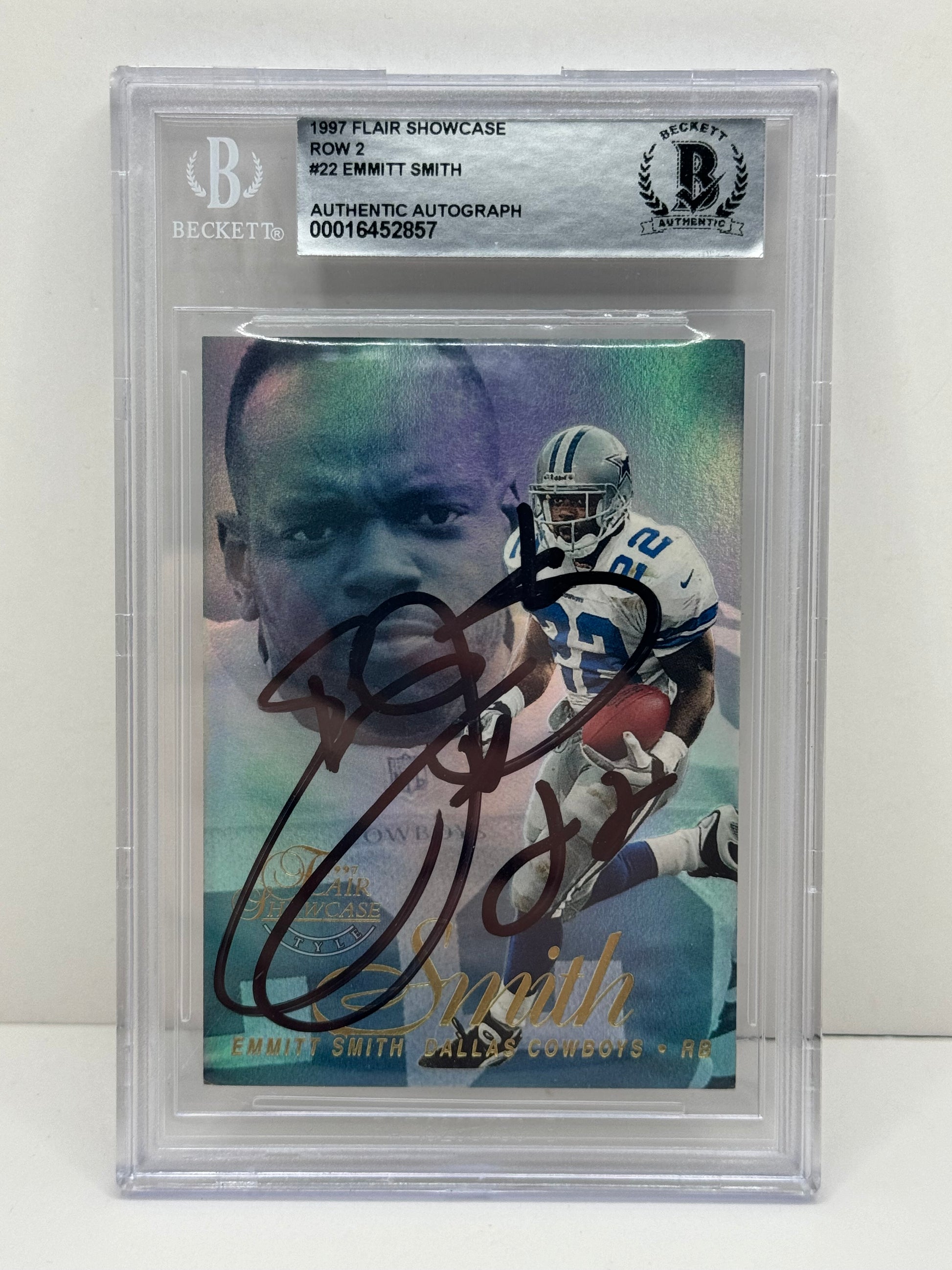 1997 Flair Showcase Row 2 #22 Emmitt Smith On Card Autograph BAS Beckett Authentic