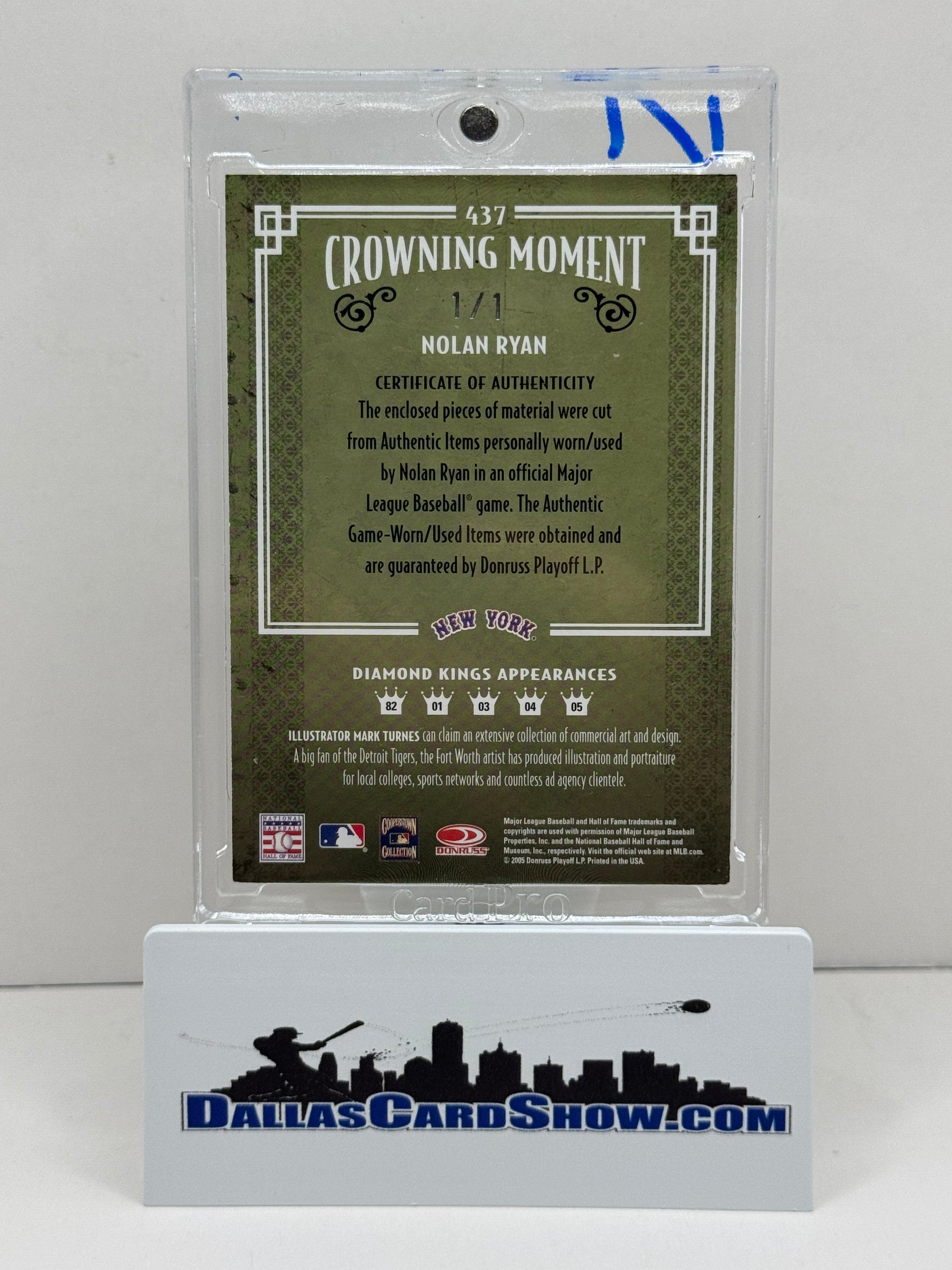 2005 Diamond Kings #437 Nolan Ryan Crowning Moments Legend Platinum Relic 1/1