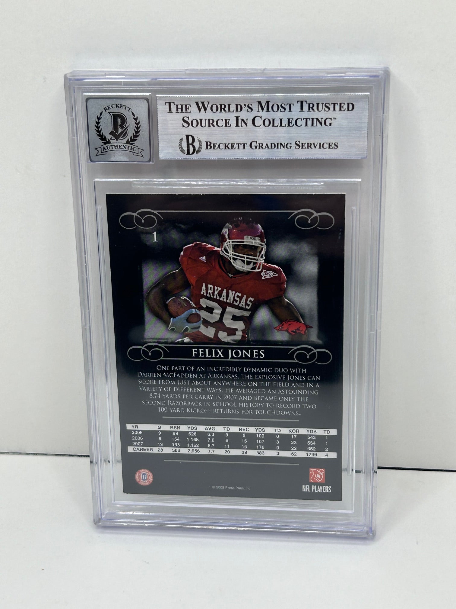 2008 Press Pass Legends Felix Jones #1 Auto Beckett Witnessed Beckett 10 Autograph (4687)