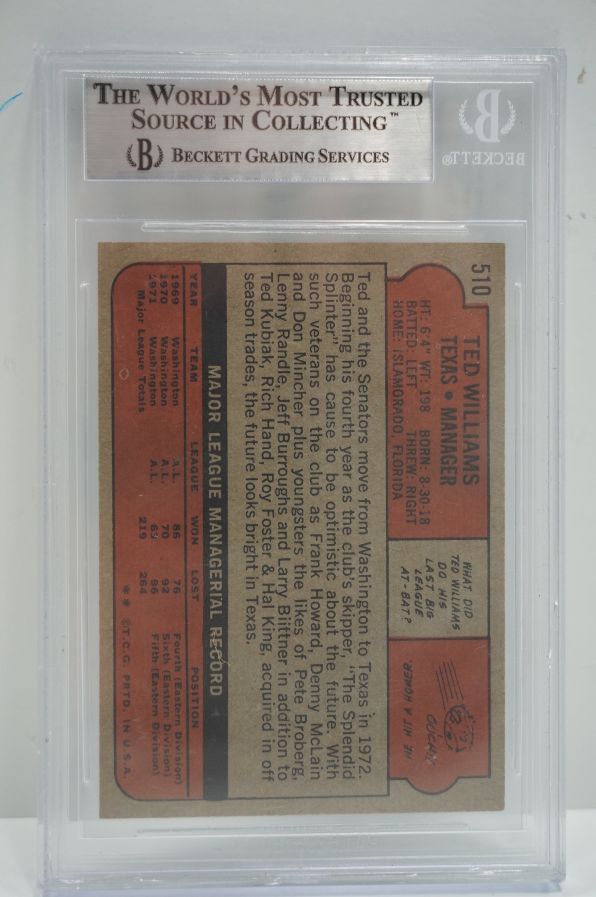 1972 TOPPS Ted Williams SIGNED #510 BAS Slab TEXAS RANGERS BOSTON RED SOX