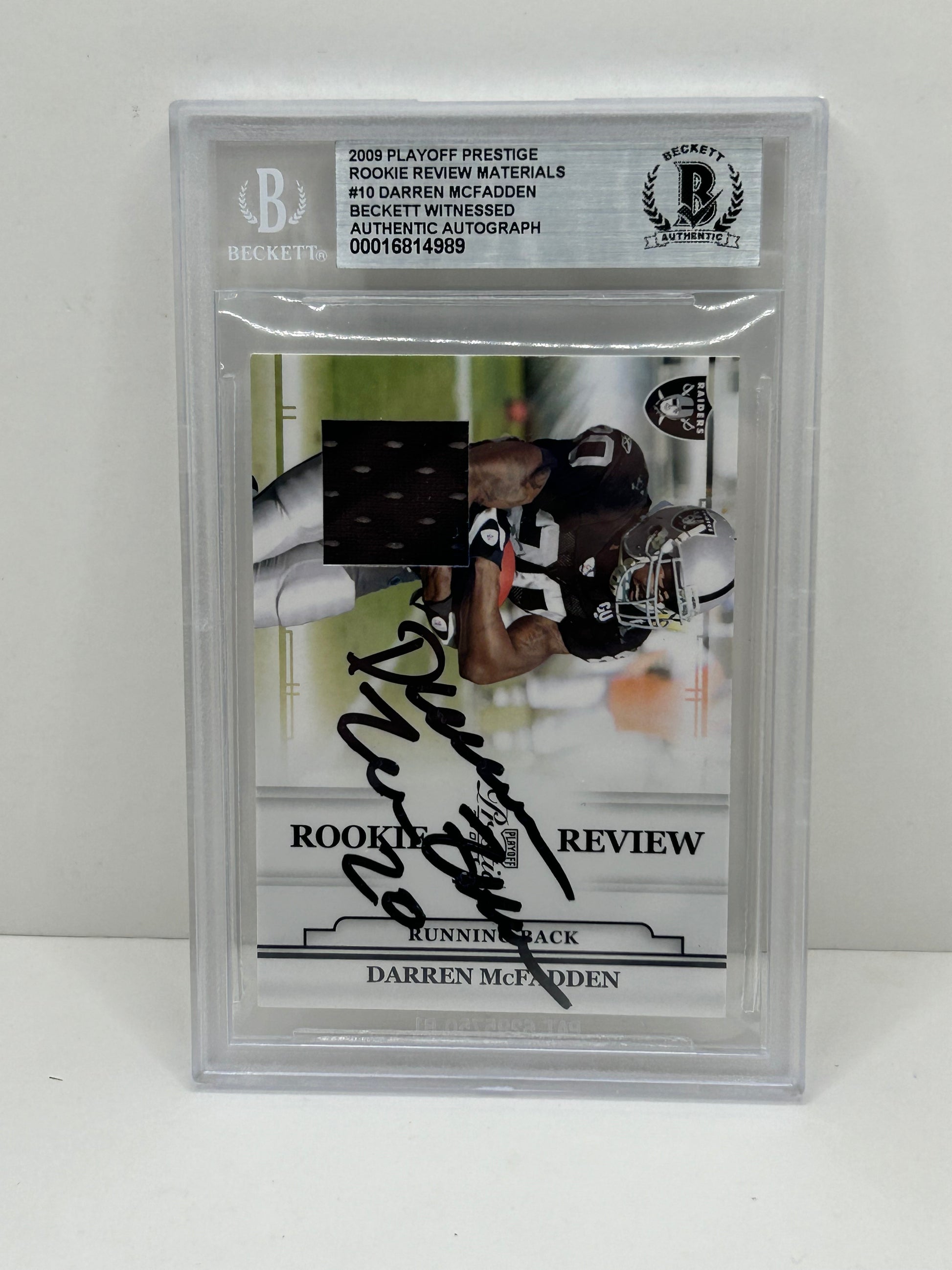 2009 Playoff Prestige Darren Mcfadden #10 Auto Rookie Review Materials Beckett Witnessed Beckett Authentic (4989)