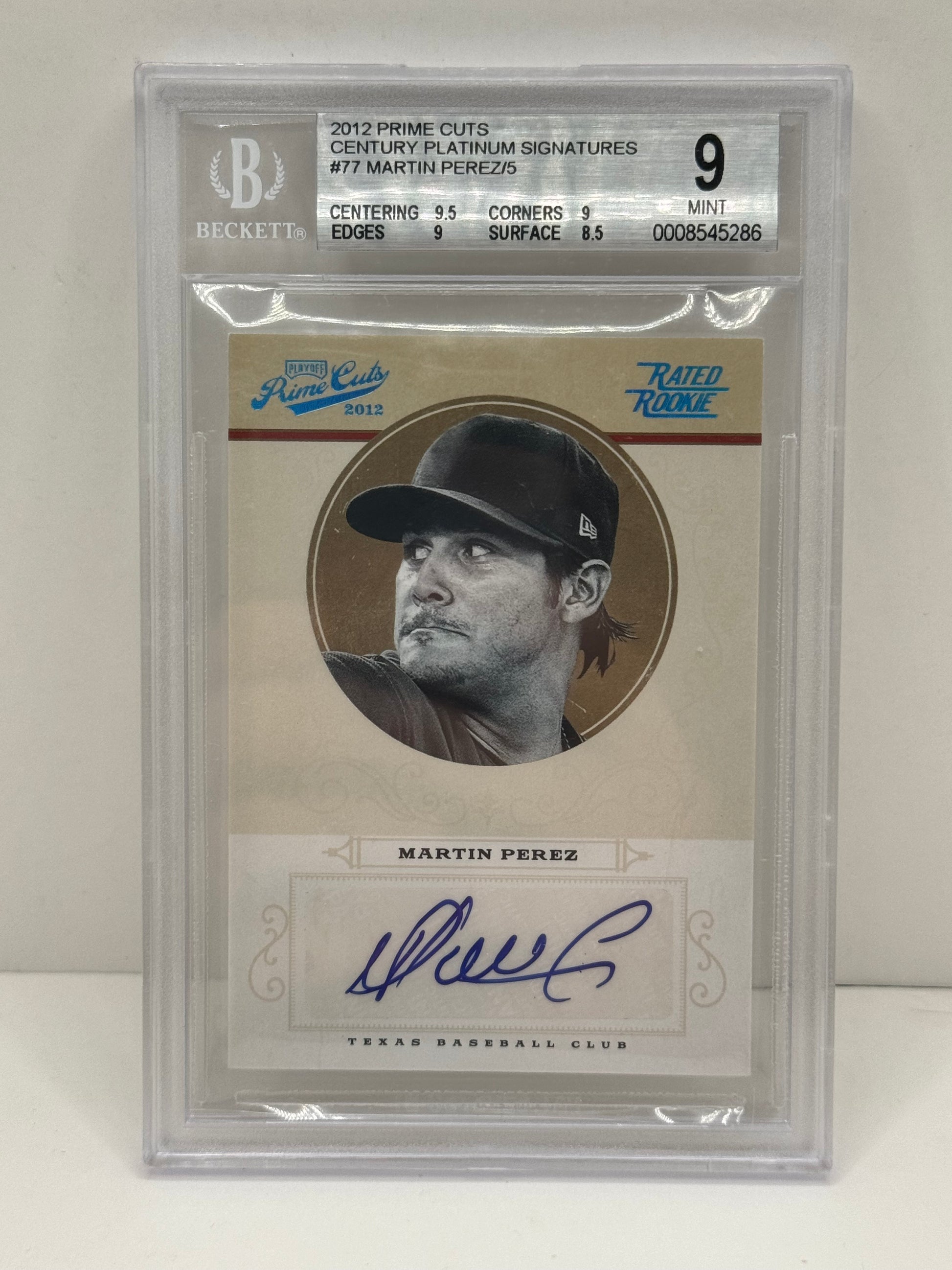 2012 Prime Cuts Martin Perez Century Platinum Signatures #77 #/5 Beckett 9