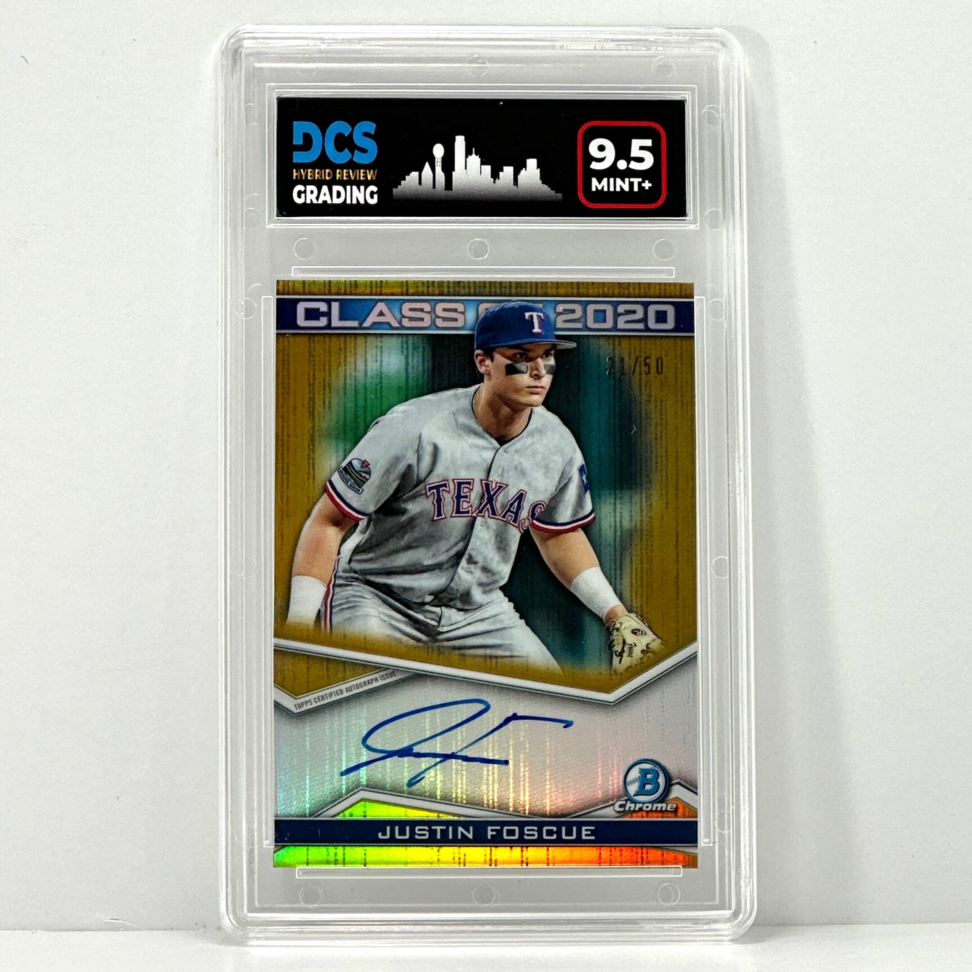 2020 Bowman Chrome Class of 2020 Justin Foscue Gold/50 DCS 9.5