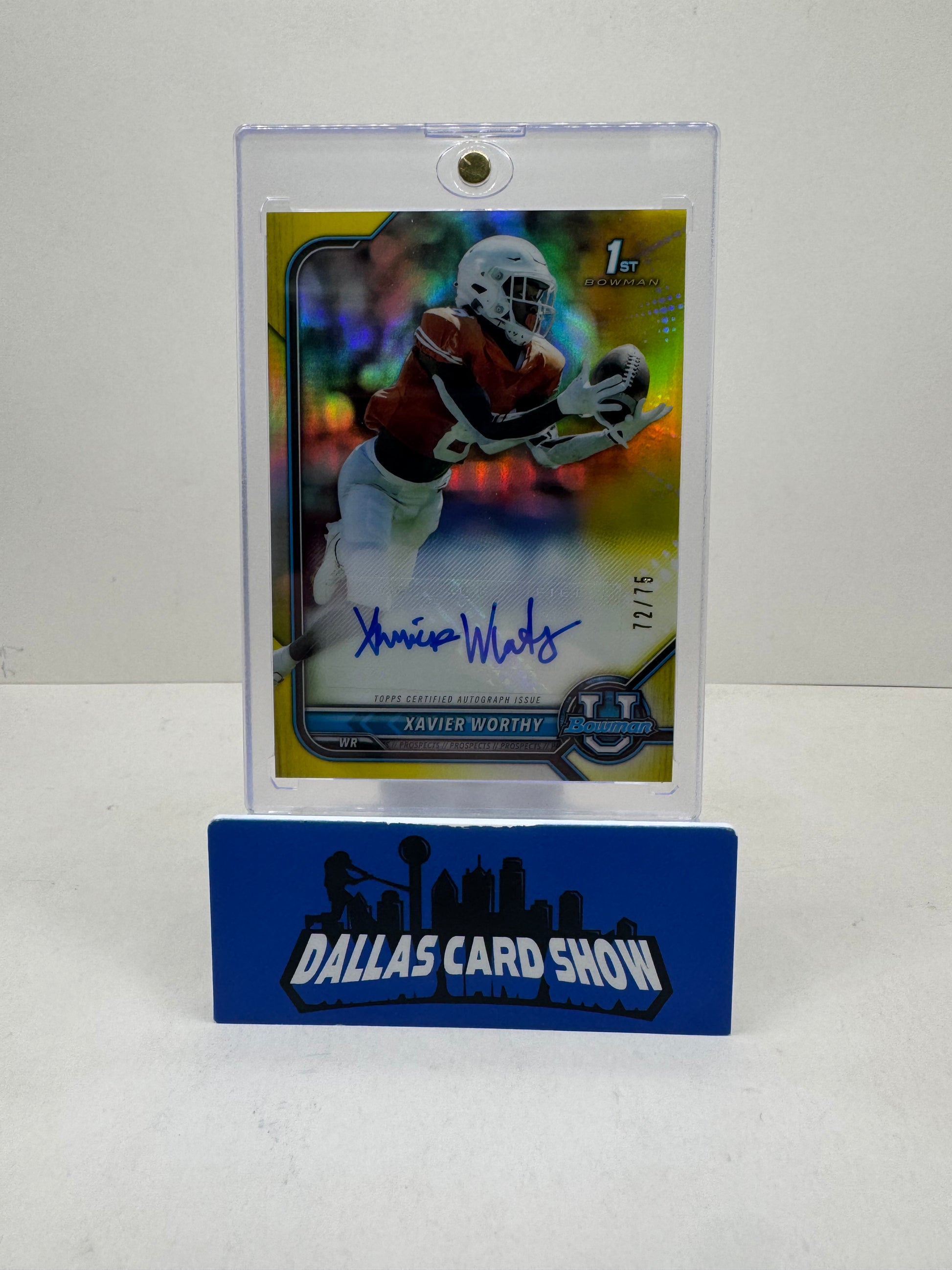 2022 Bowman U Football Xavier Worthy Yellow Refractor Auto /75