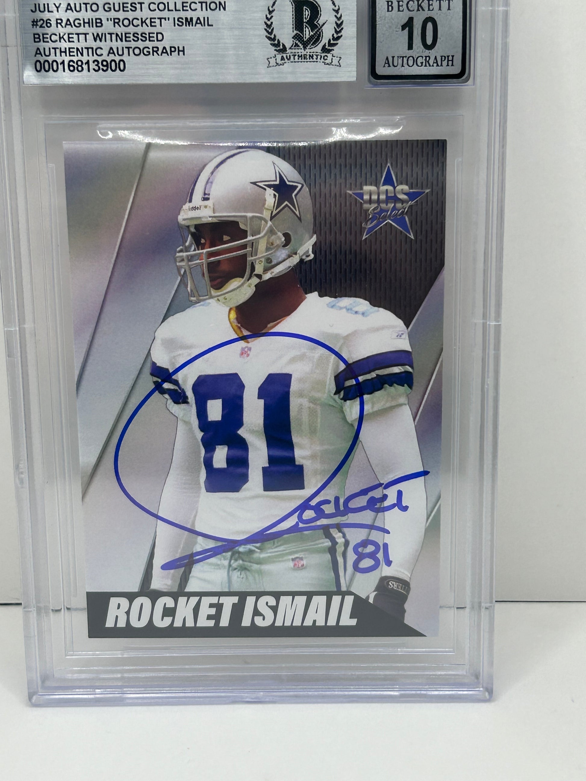 2023 Dallas Card Show Raghib "Rocket" Ismail #26 July Auto Guest Collection Beckett Witnessed Beckett 10 Autograph (3900)