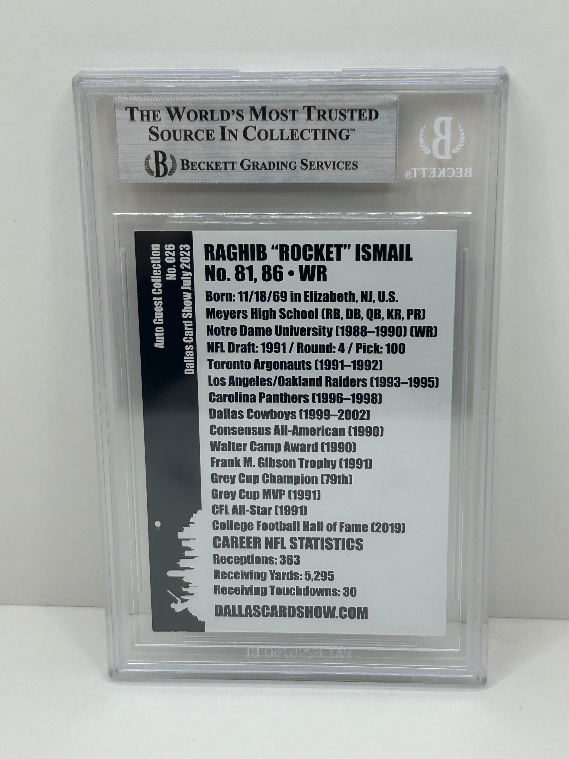 2023 Dallas Card Show Raghib "Rocket" Ismail #26 July Auto Guest Collection Beckett Witnessed Beckett Authentic (4983)