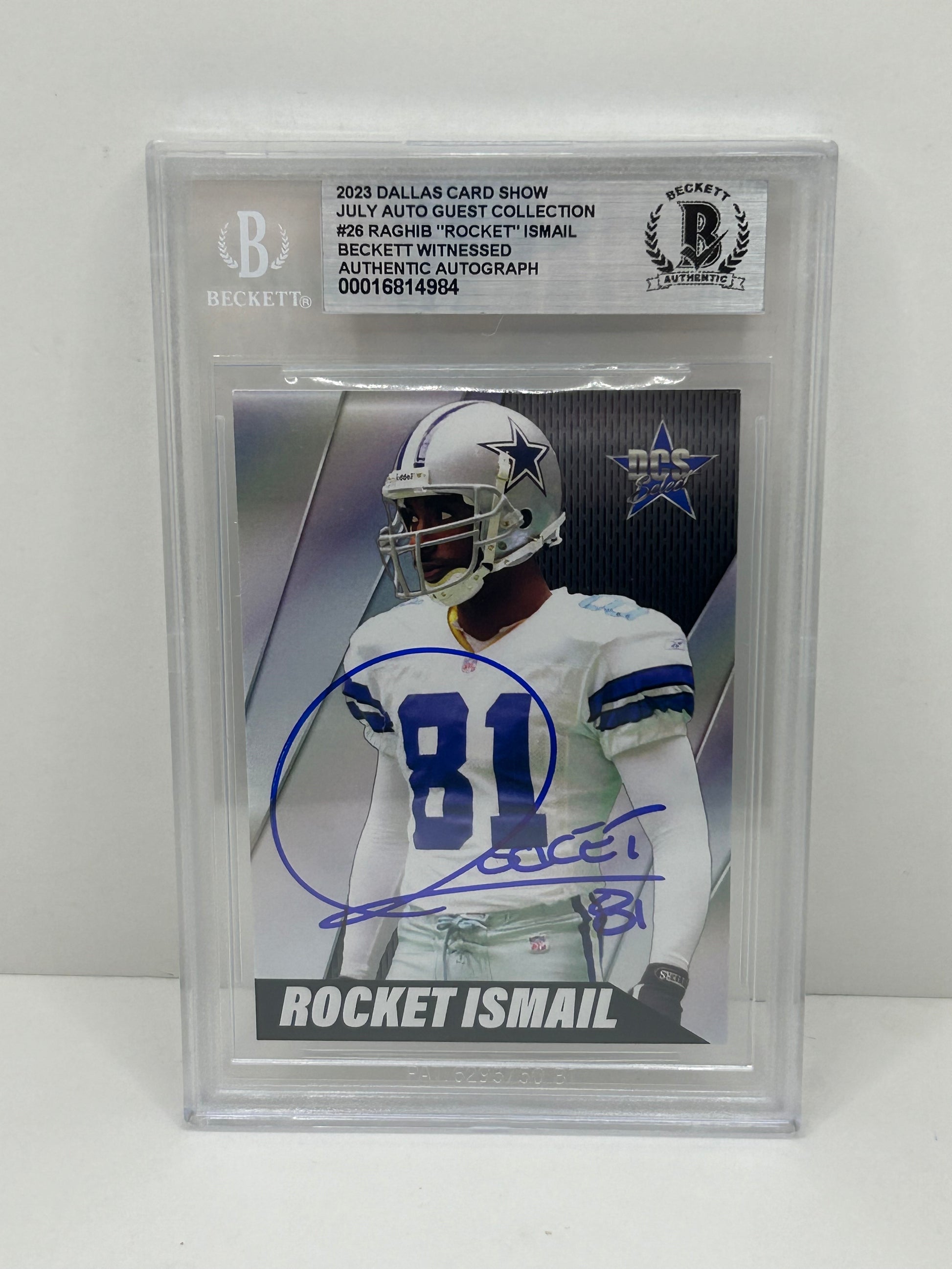 2023 Dallas Card Show Raghib "Rocket" Ismail #26 July Auto Guest Collection Beckett Witnessed (4984)