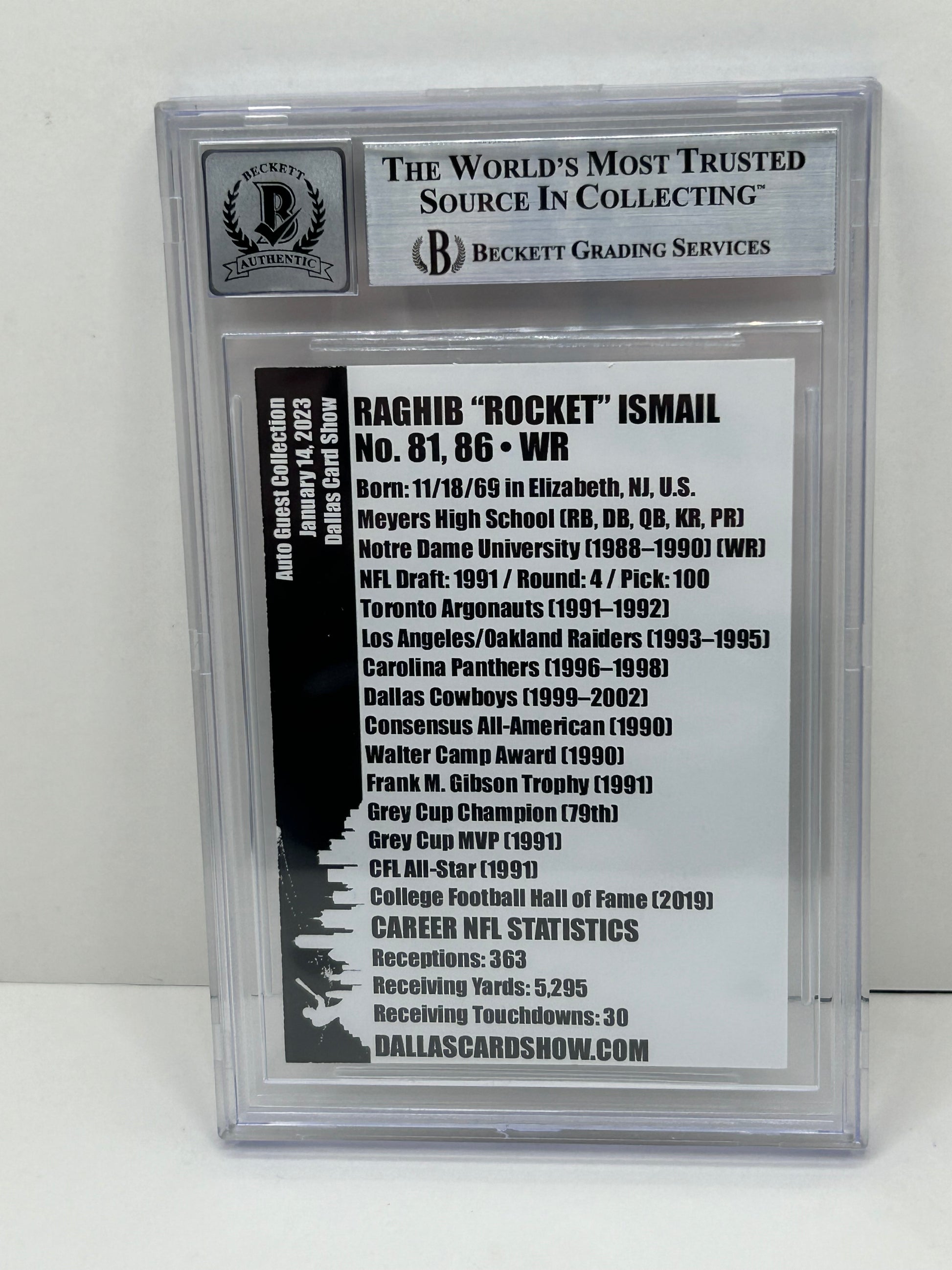 2023 Dallas Card Show Raghib "Rocket" Ismail January Guest Collection Beckett 10 (3895)