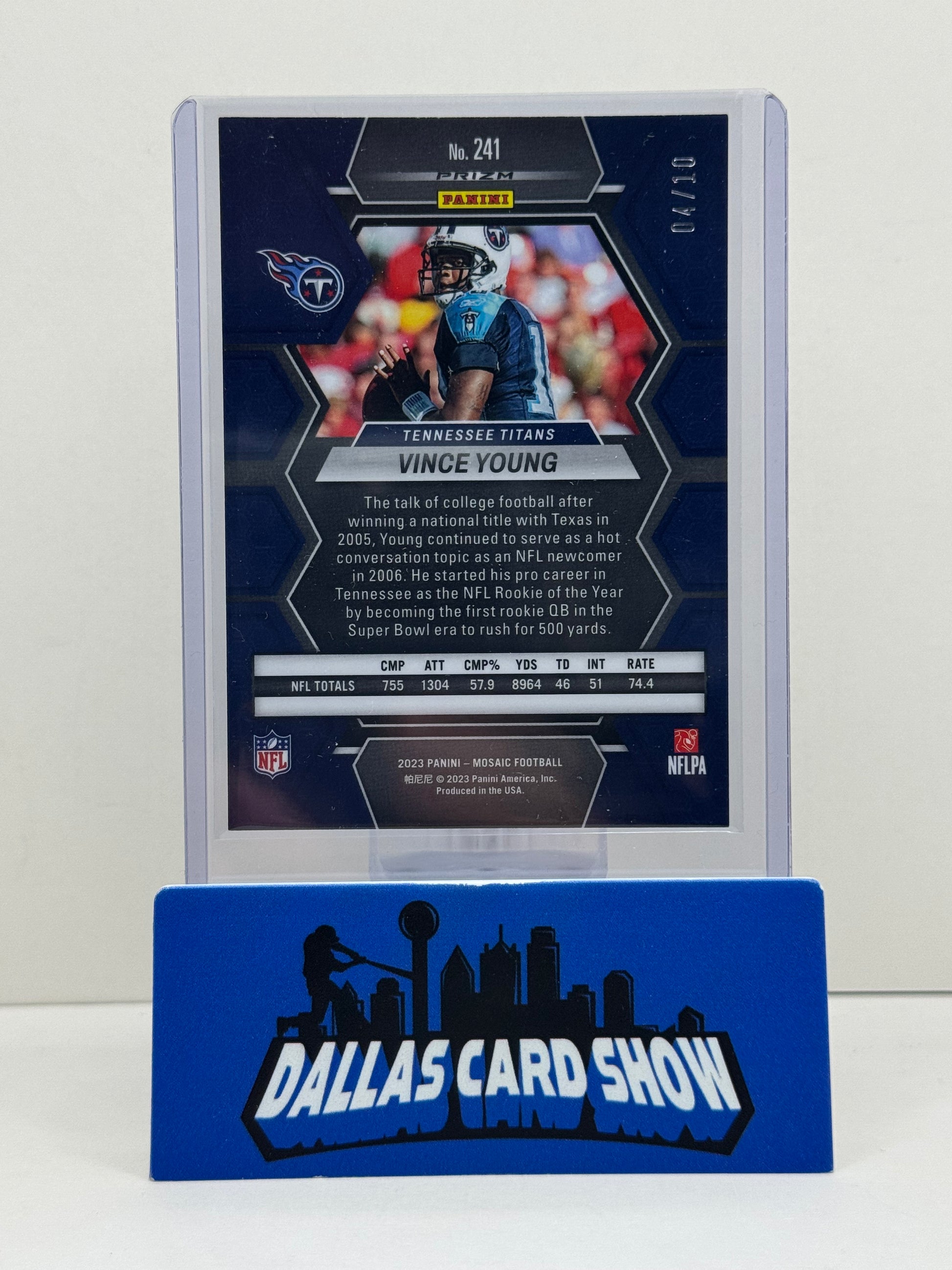 2023 Panini Mosaic No Huddle #241 Vince Young Gold /10 Texas Longhorns