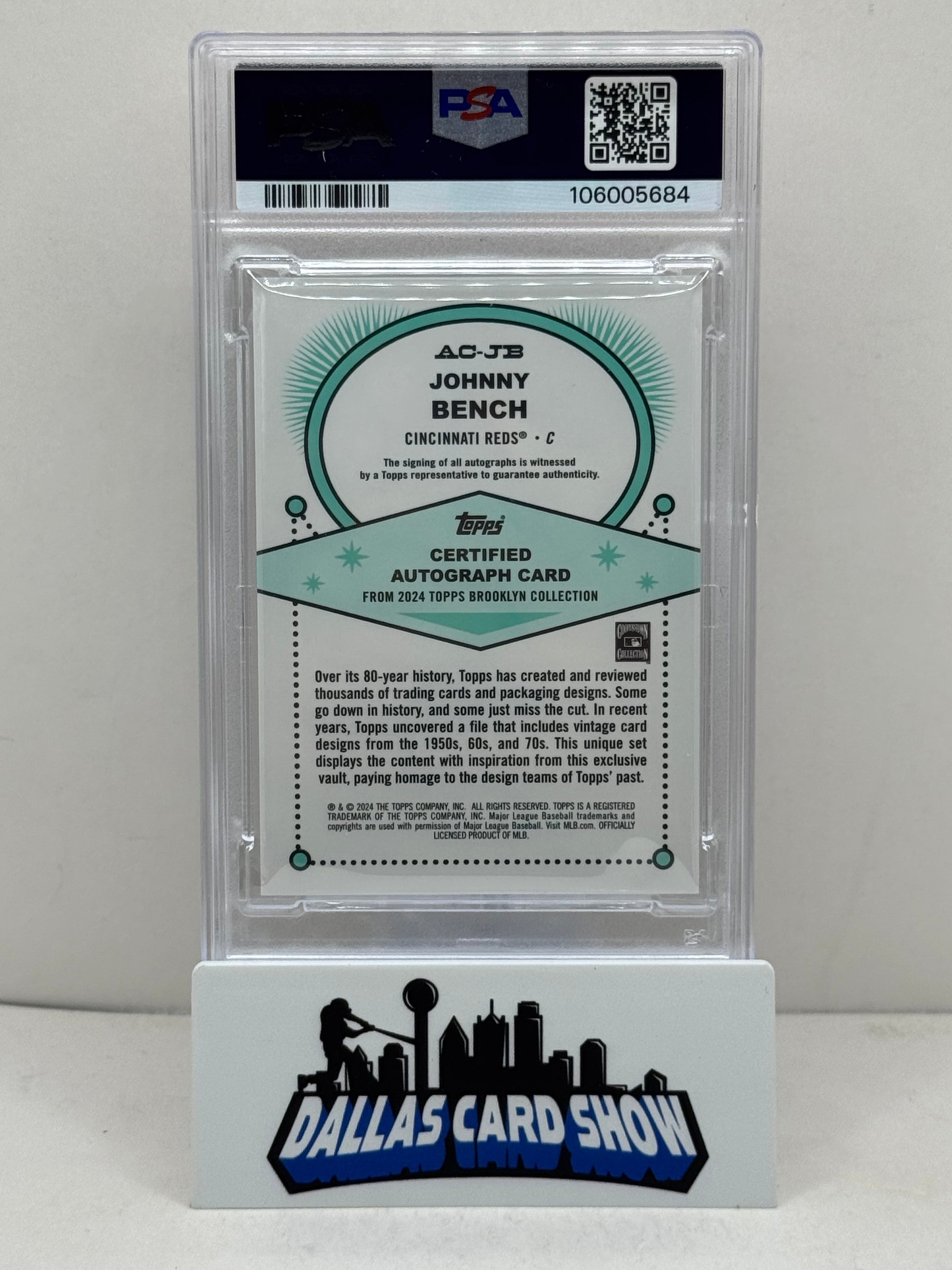 2024 Topps Brooklyn Collection #JB Johnny Bench Purple Autograph /15 PSA 9