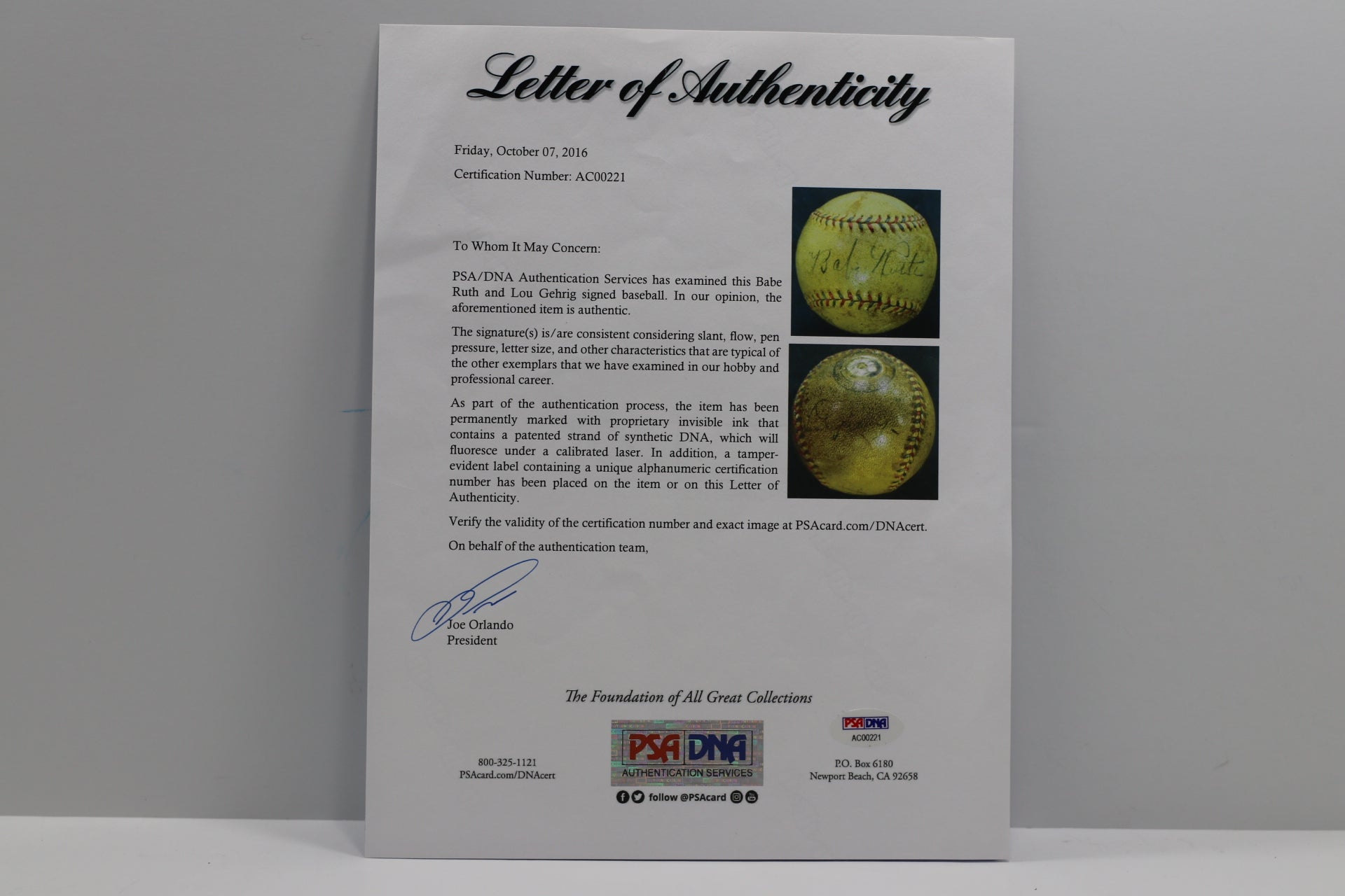 BABE RUTH & LOU GEHRIG New York Yankees SIGNED BASEBALL BAS ENCAP JSA PSA LOA