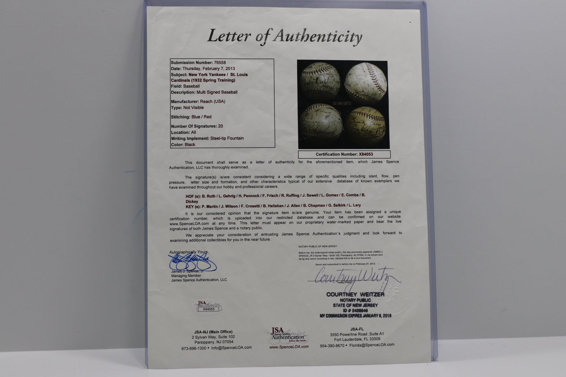 1932 New York Yankees St. Louis Cardinals SIGNED BASEBALL BABE RUTH LOU GEHRIG BAS