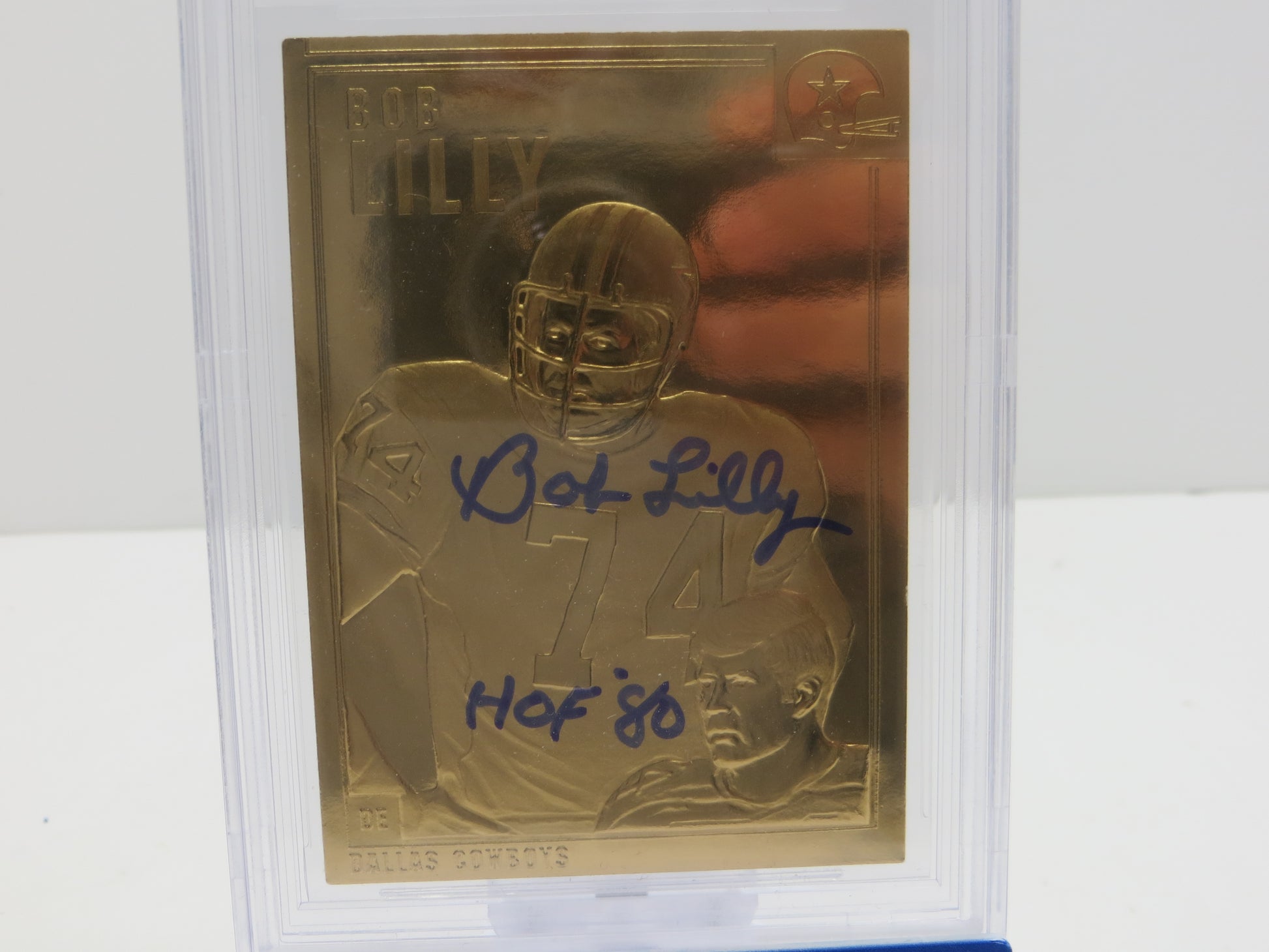 BOB LILLY SIGNED 99-01 DANBURY MINT 22K GOLD #17 COWBOYS BGS BAS SLAB AUTO 10