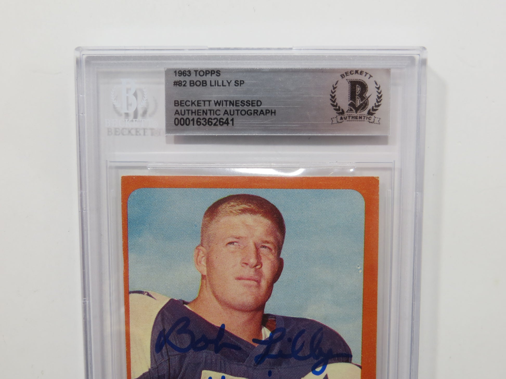 BOB LILLY SIGNED 1963 Topps #82 BGS BAS SLAB w/HOF 80 DALLAS COWBOYS Auto