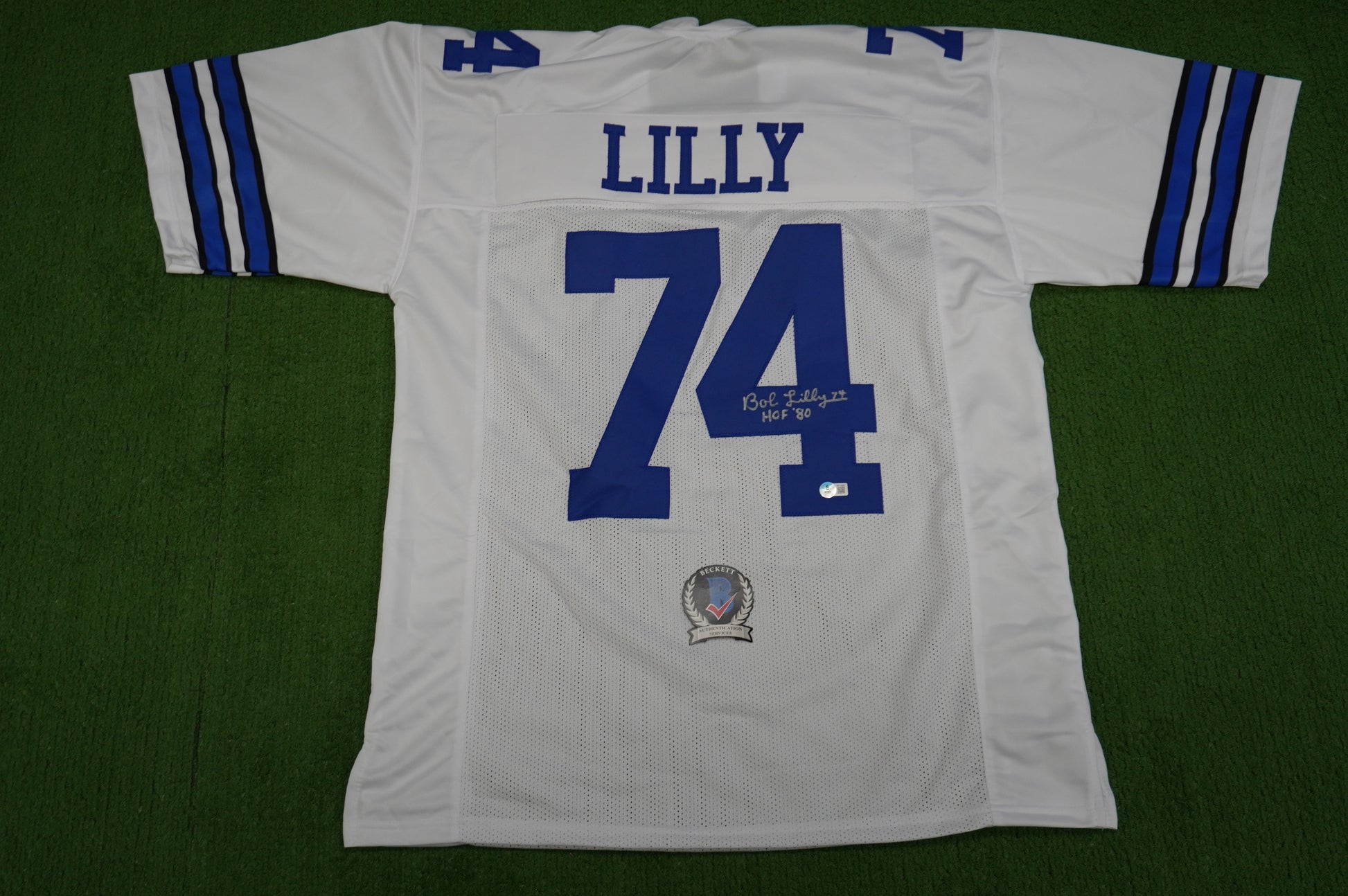 BOB LILLY SIGNED WHITE JERSEY Size XL Dallas Cowboys w/HOF 80 BAS COA
