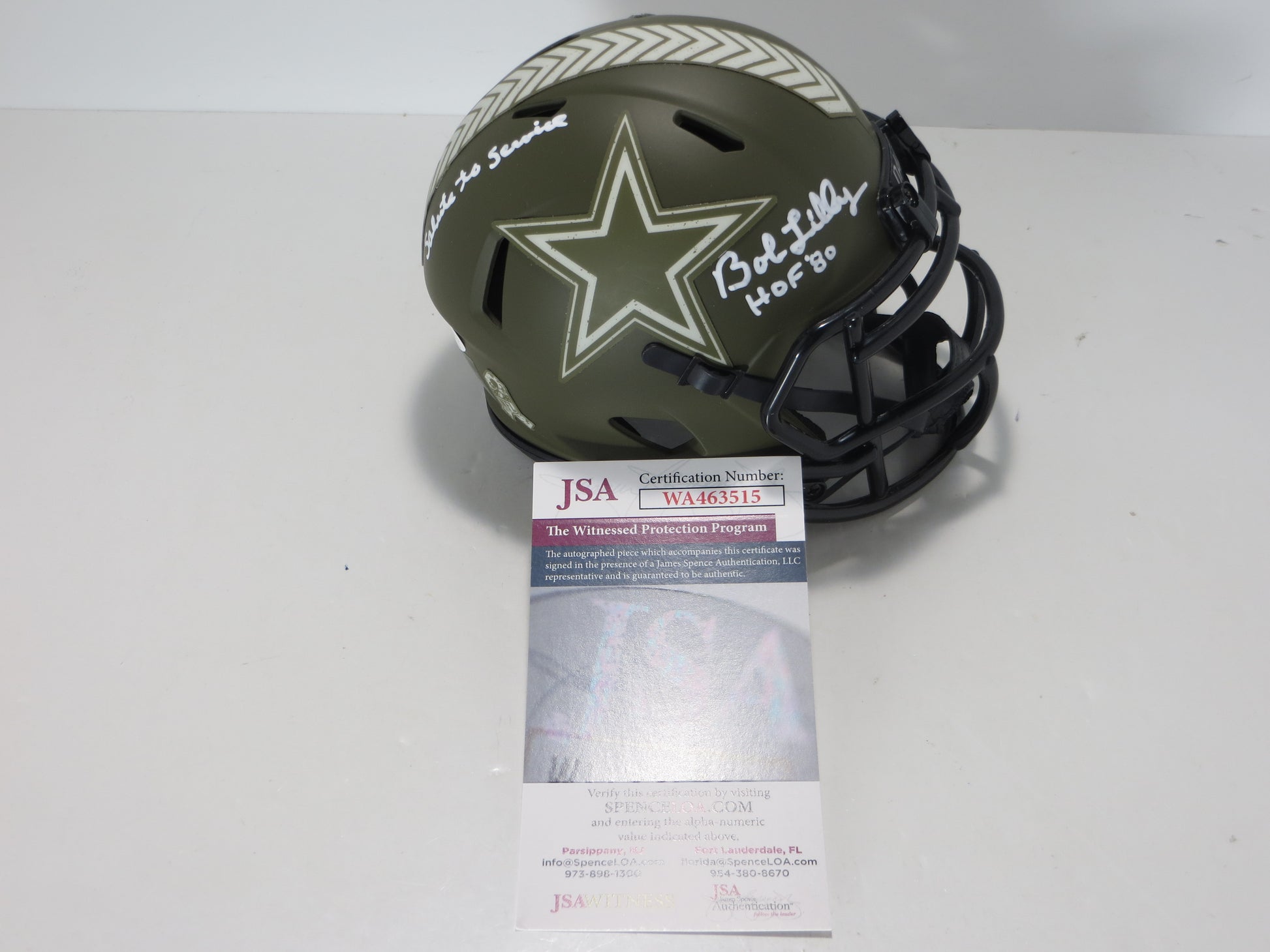 BOB LILLY SIGNED DALLAS COWBOYS MINI Salute to Service HELMET w/INSCs JSA