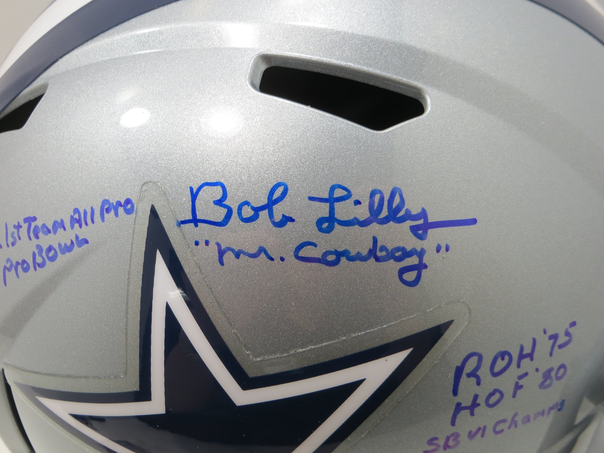 BOB LILLY SIGNED DALLAS COWBOYS RIDDELL FULL SIZE HELMET w/6 INSCs JSA COA