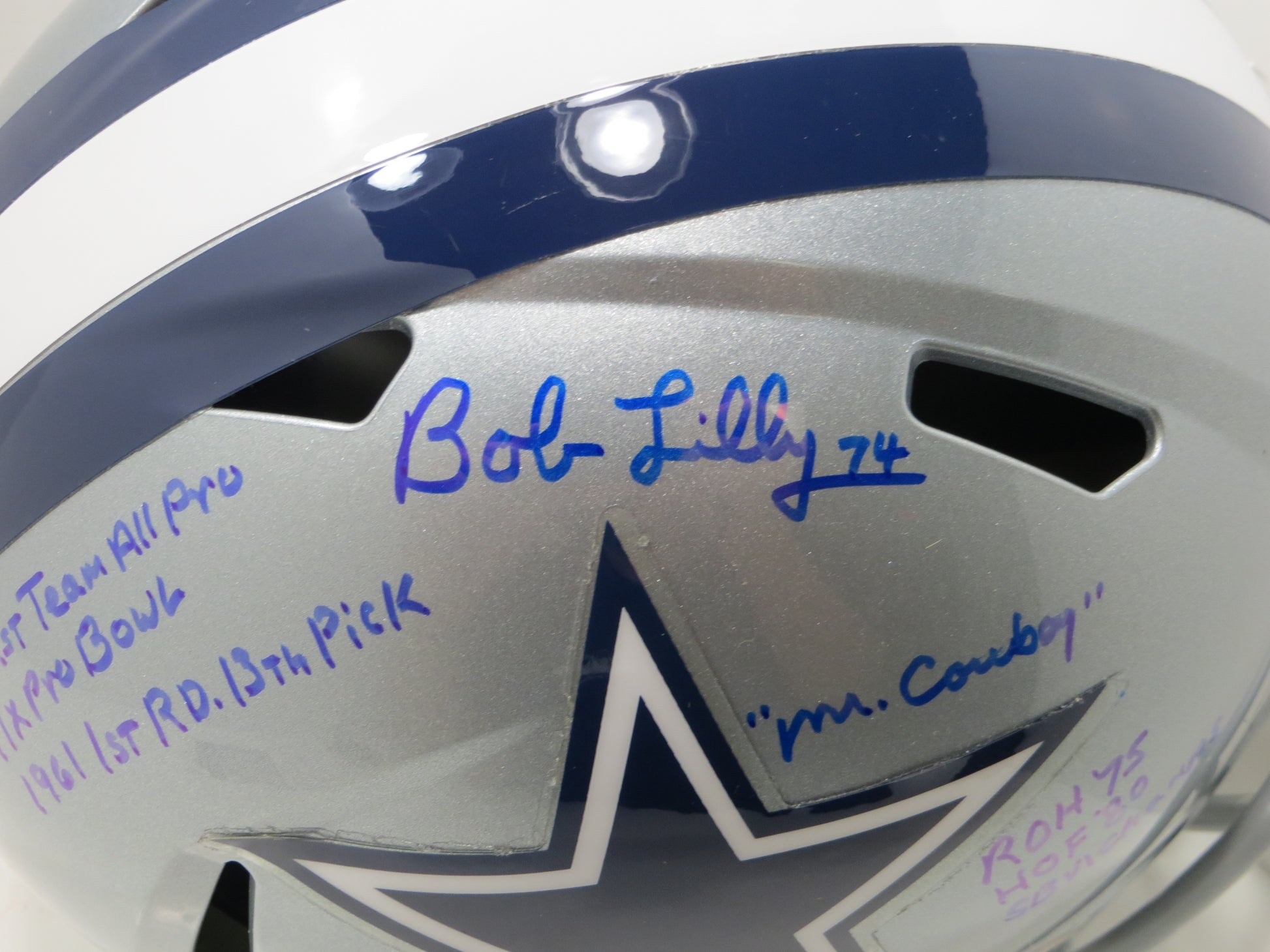 BOB LILLY SIGNED DALLAS COWBOYS RIDDELL FULL SIZE HELMET w/8 INSCs JSA COA