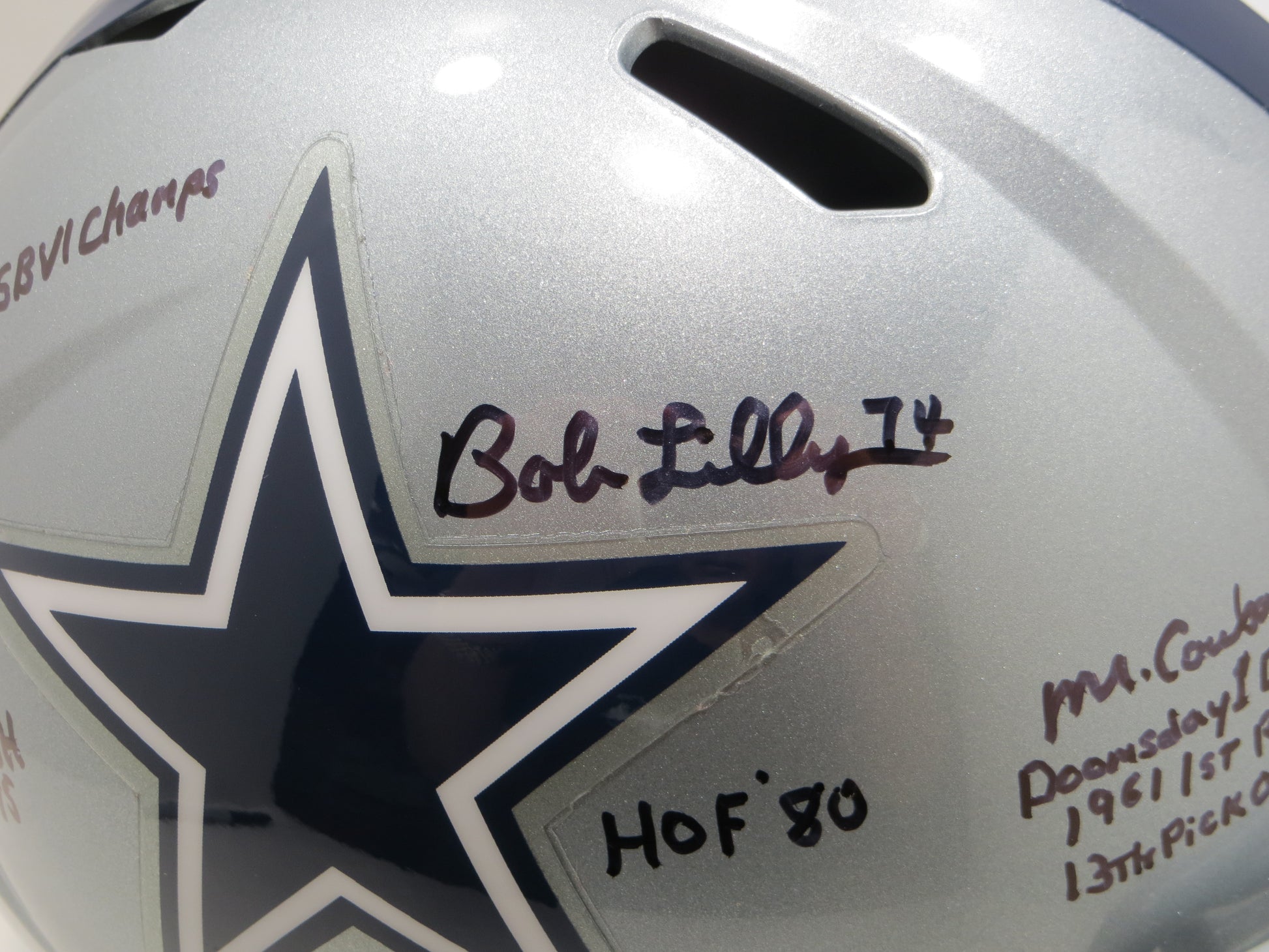 BOB LILLY SIGNED DALLAS COWBOYS RIDDELL FULL SIZE HELMET w10STATS BAS