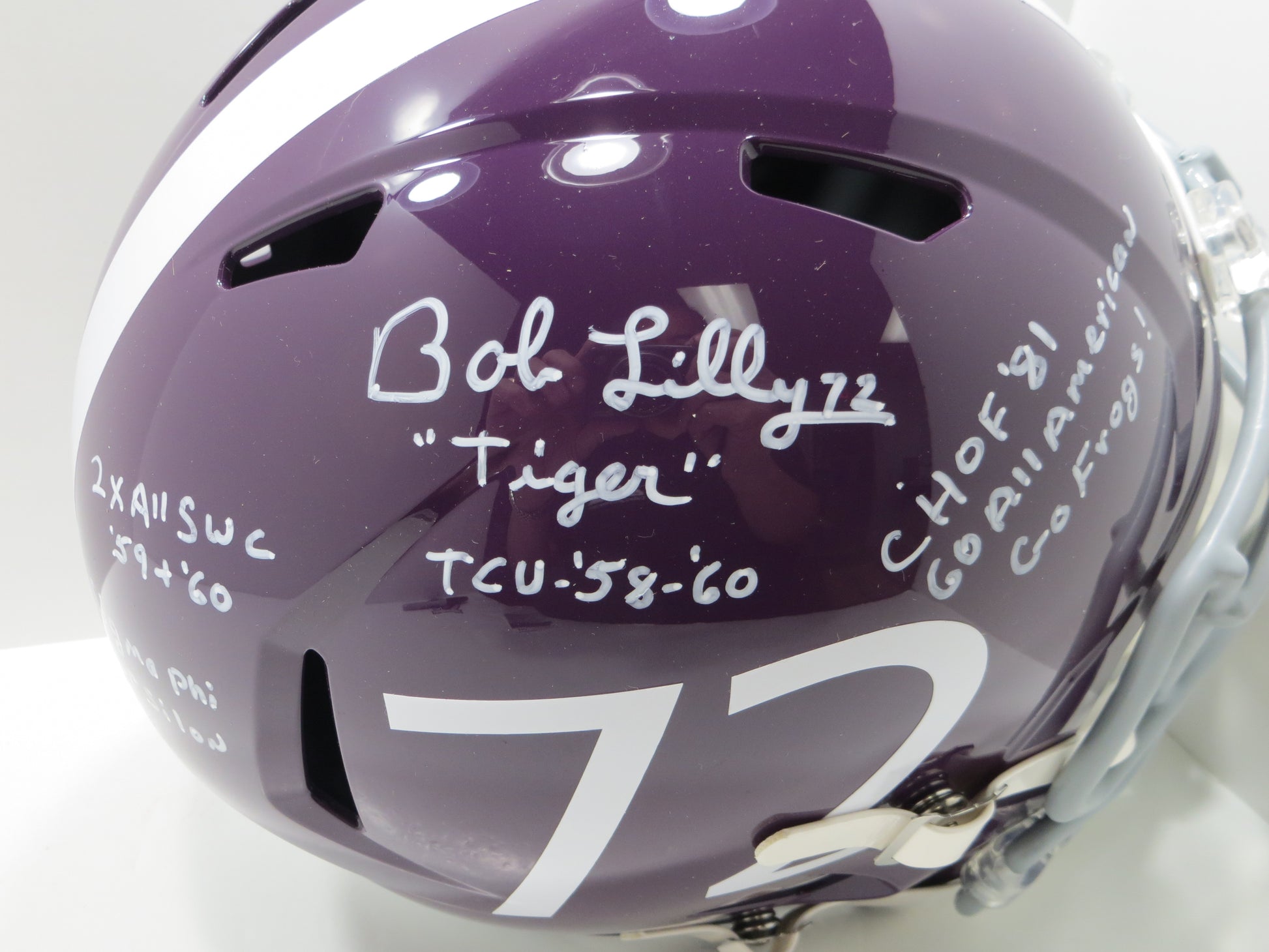 BOB LILLY SIGNED TCU HORNED FROGS #72 FULL SIZE HELMET w/MULTI INSCs JSA COA