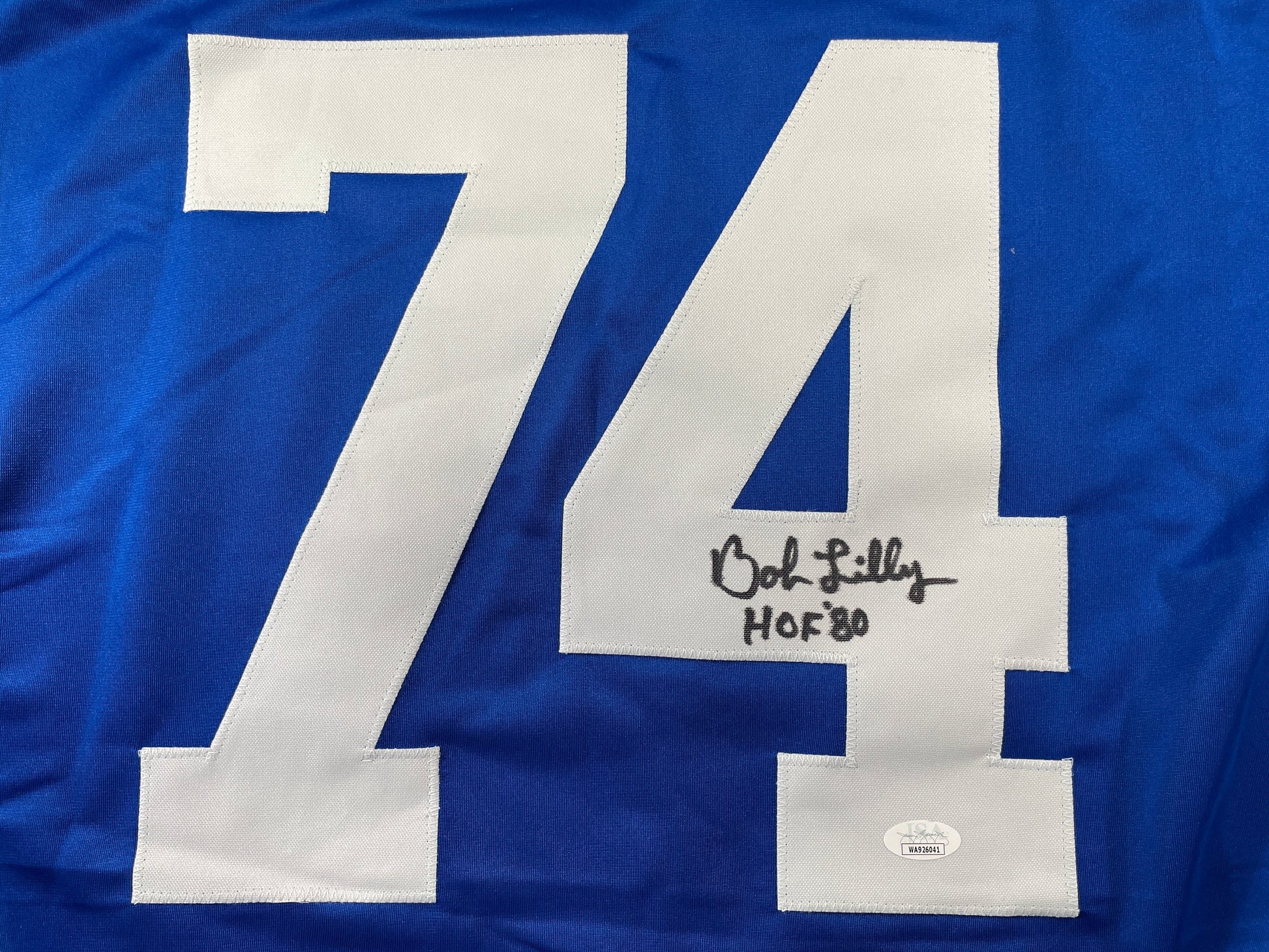BOB LILLY DALLAS COWBOYS SIGNED SEWN THROWBACK FOOTBALL STAT JERSEY JSA