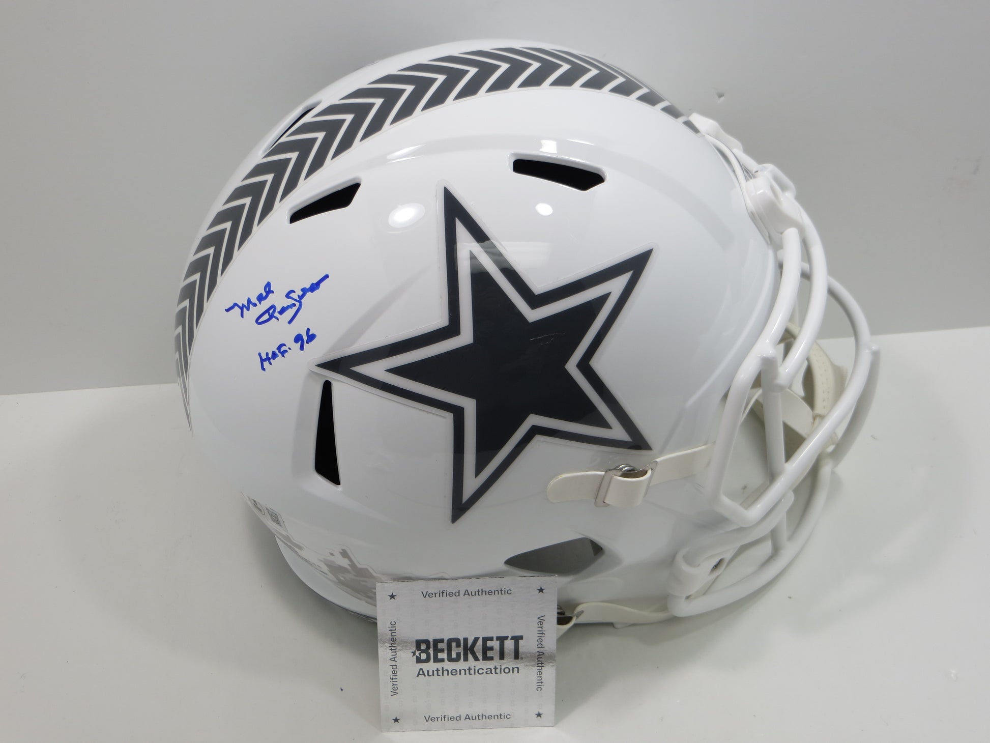 MEL RENFRO DALLAS COWBOYS SIGNED SALUTE TO SERVICE SPEED F/S Helmet w/HOF BAS