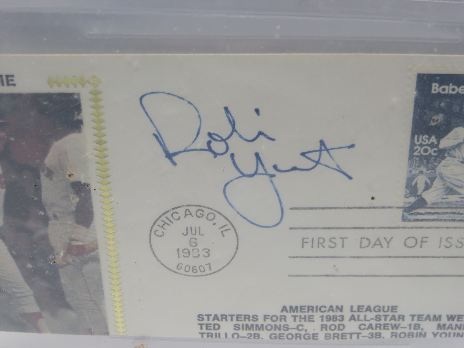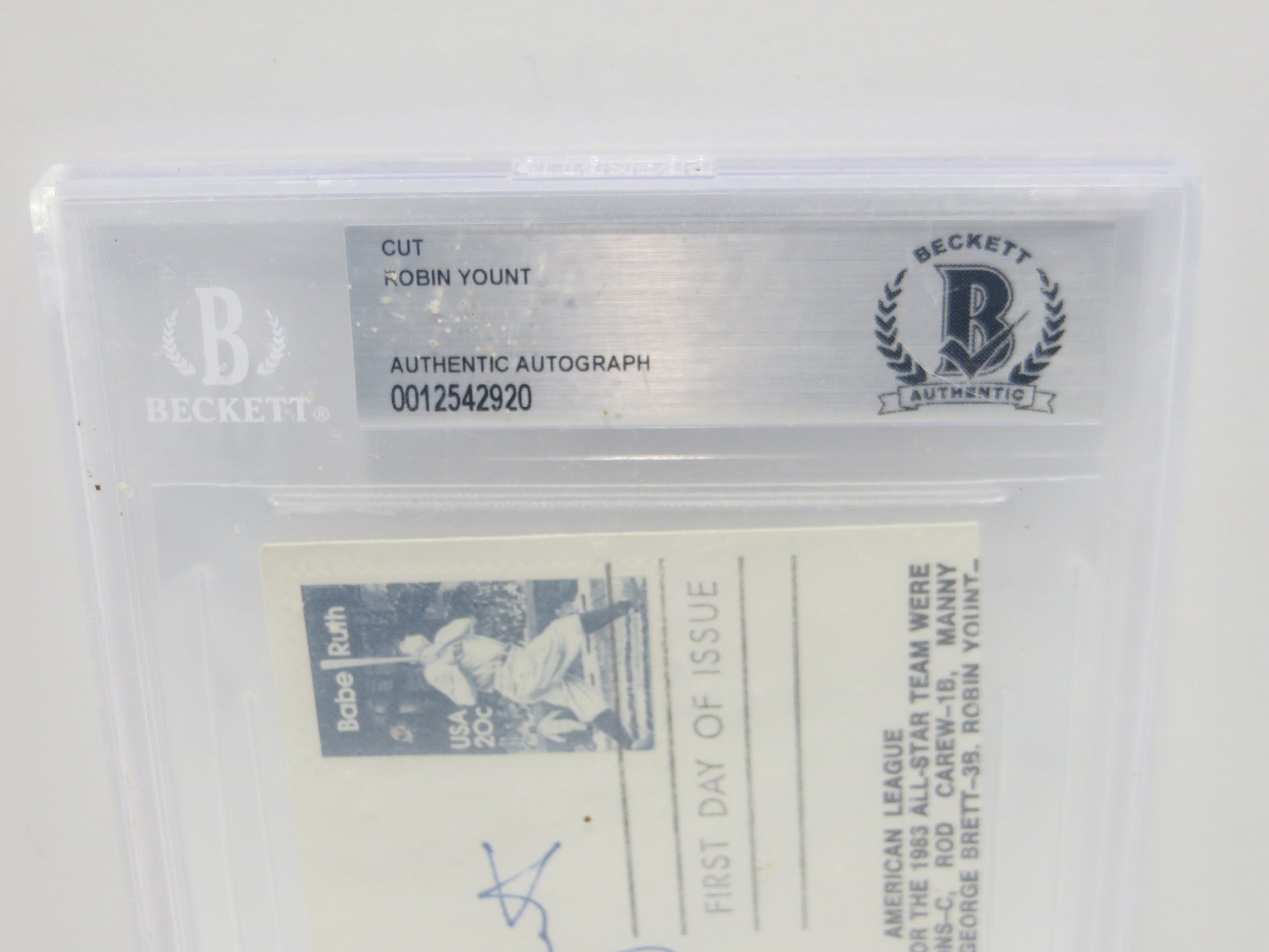 ROBIN YOUNT SIGNED MILWAUKEE BREWERS CUT First Day Issue BGS BAS SLAB