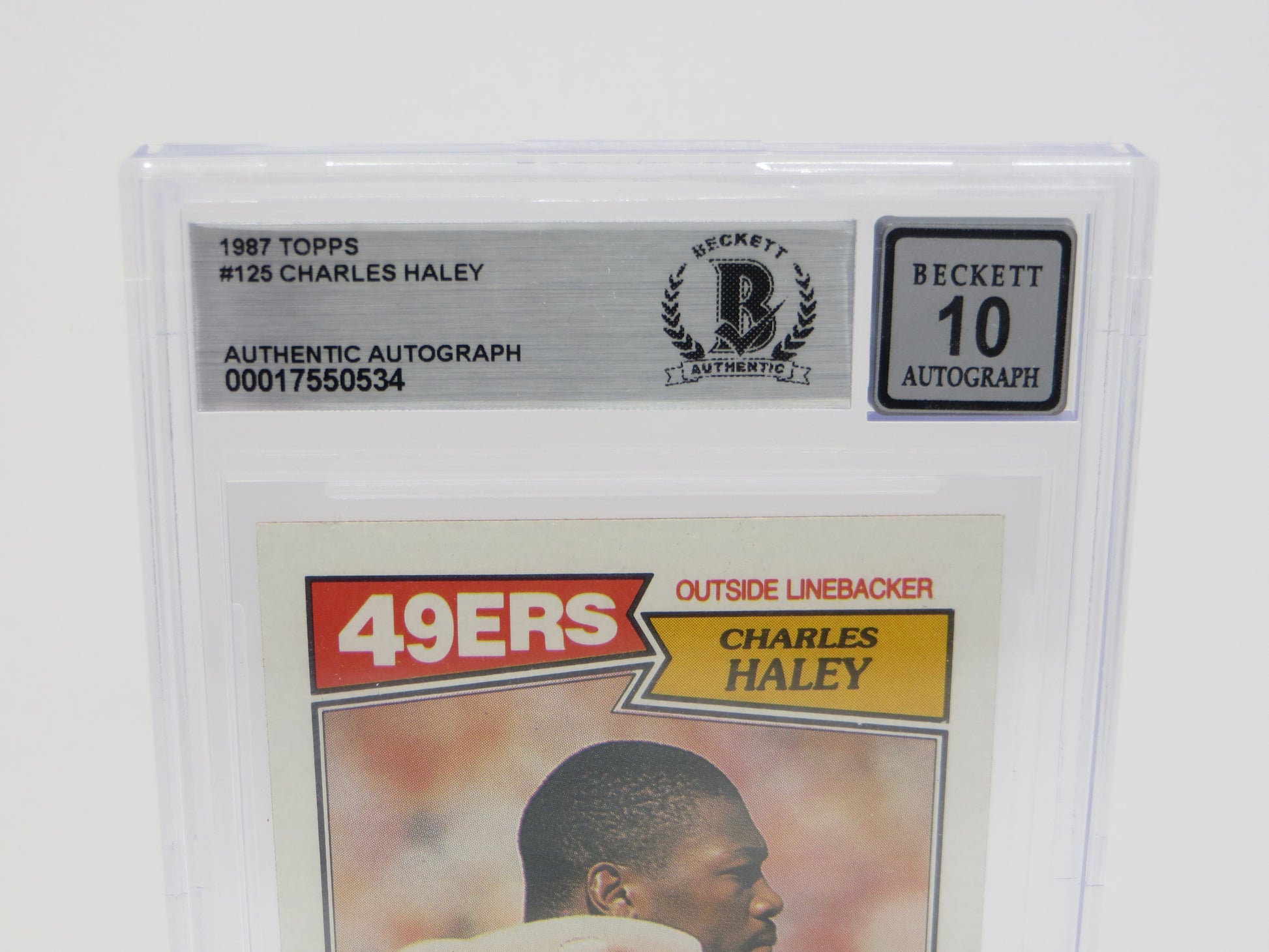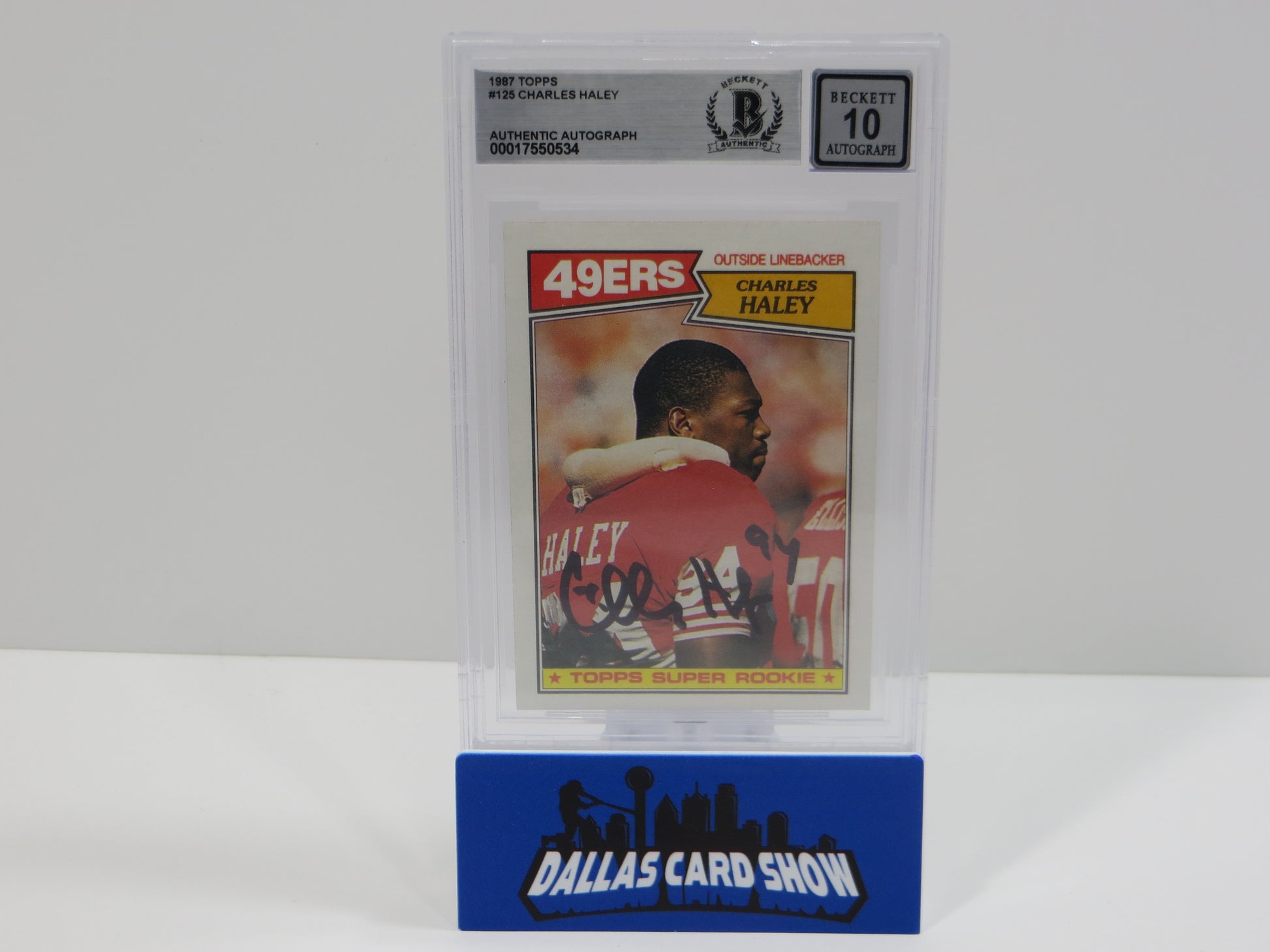 CHARLES HALEY SIGNED 1987 TOPPS #125 COWBOYS 49ers BGS BAS SLAB AUTO 10