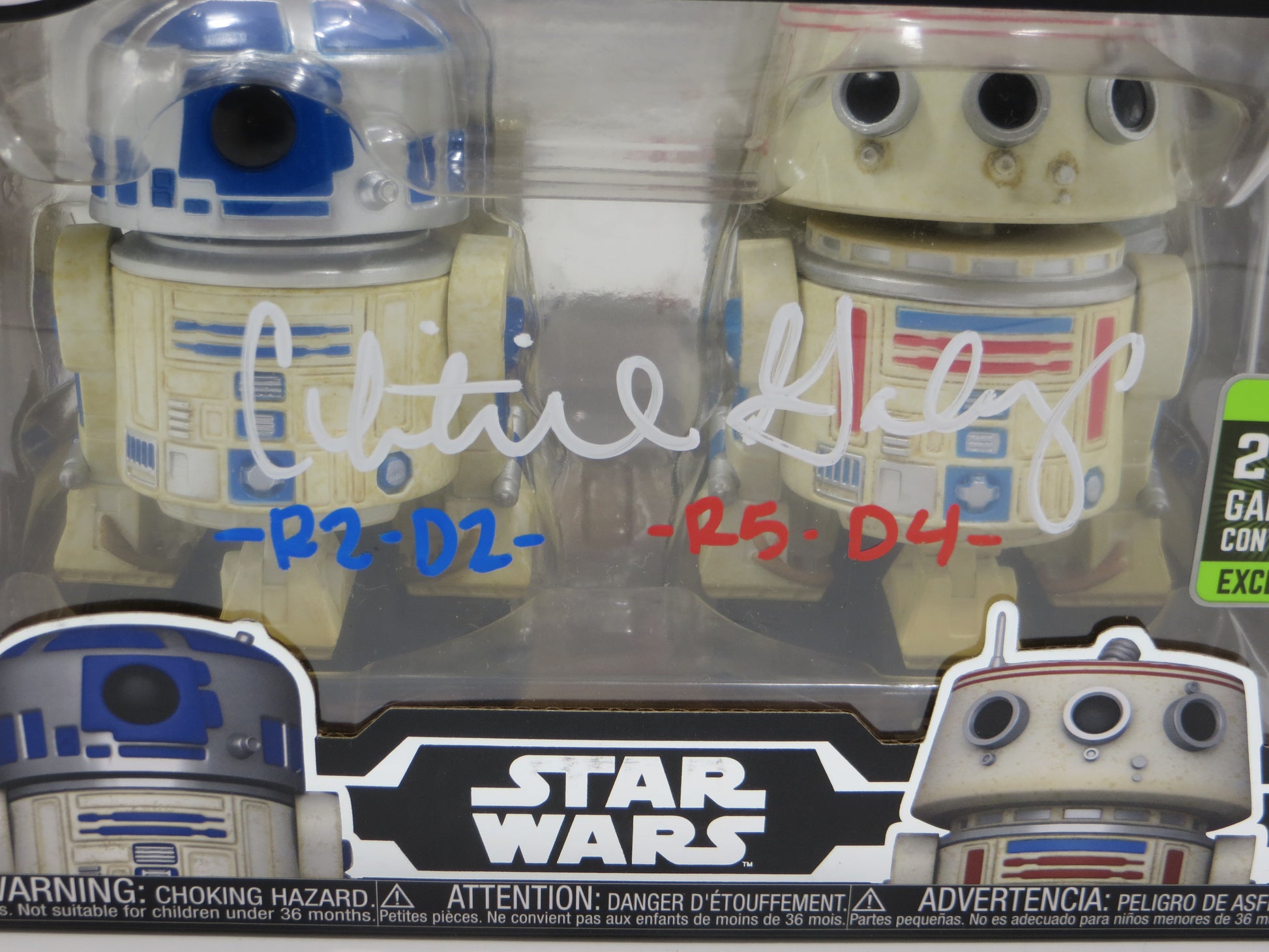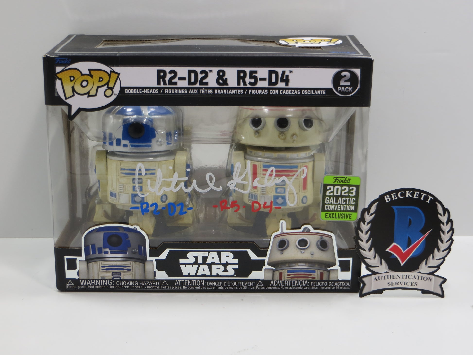 CHRISTINE GALEY SIGNED 2 PACK FUNKO POP STAR WARS w/R2D2 & R5D4 BAS COA
