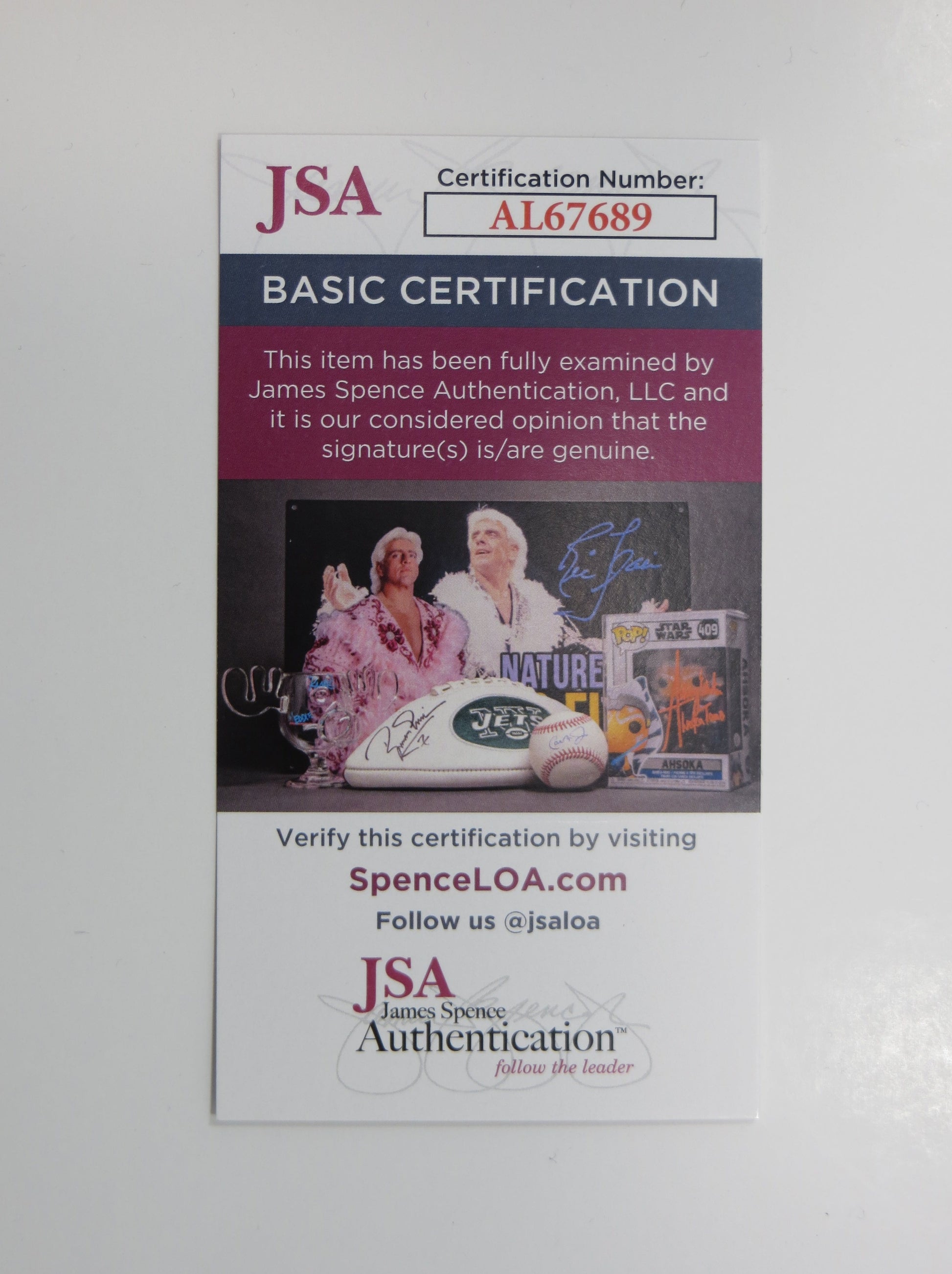 This item comes with a matching numbered sticker to a Certificate of Authenticity card from James Spence Authentication (JSA).