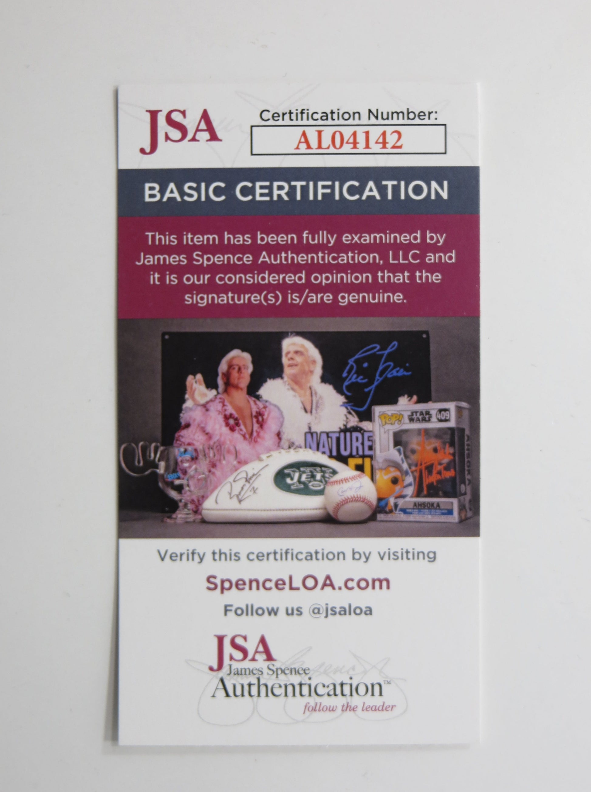 This item comes with a matching numbered sticker to a Certificate of Authenticity card from James Spence Authentication (JSA).