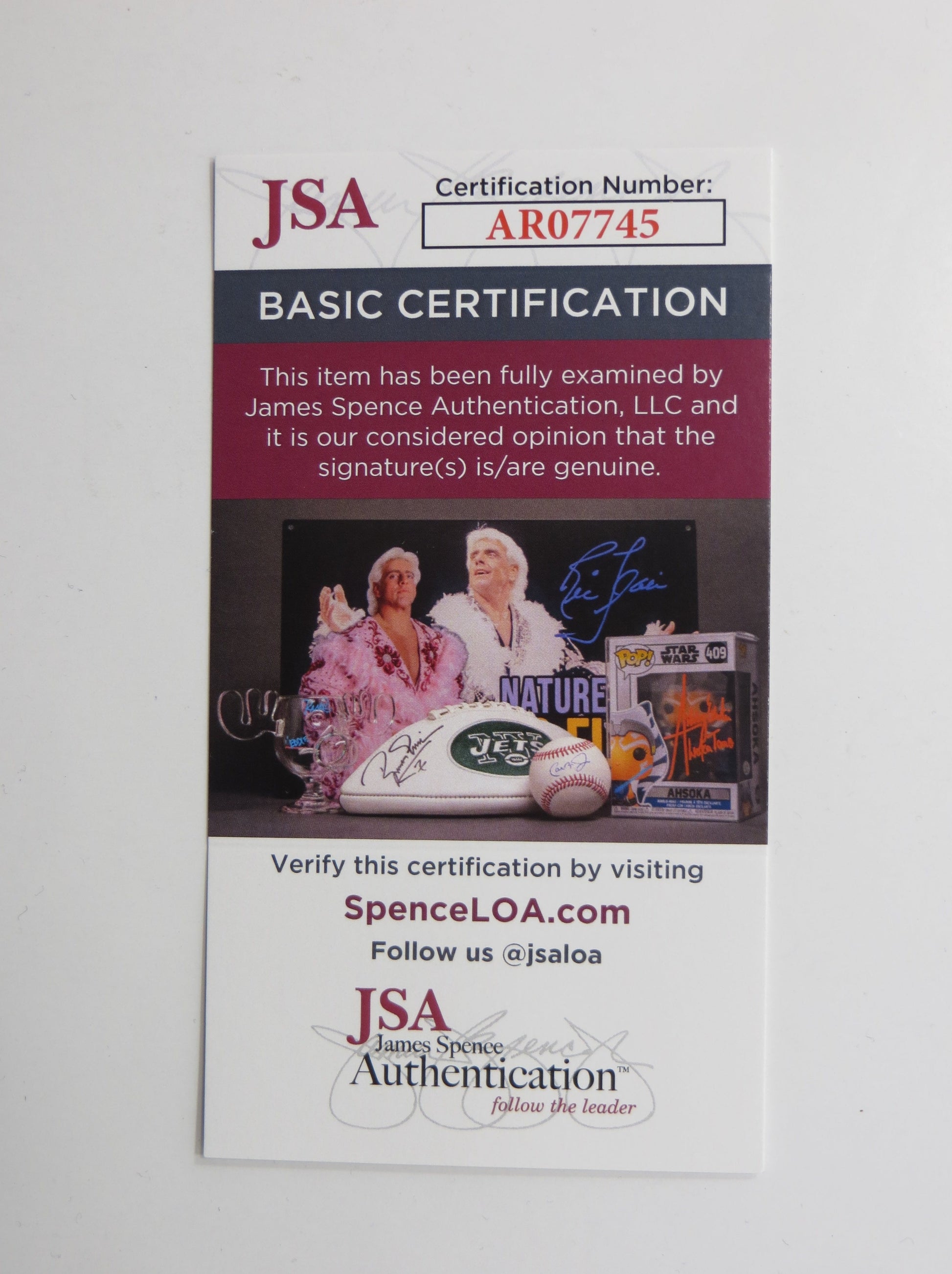 This item comes with a matching numbered sticker to a Certificate of Authenticity card from James Spence Authentication (JSA).