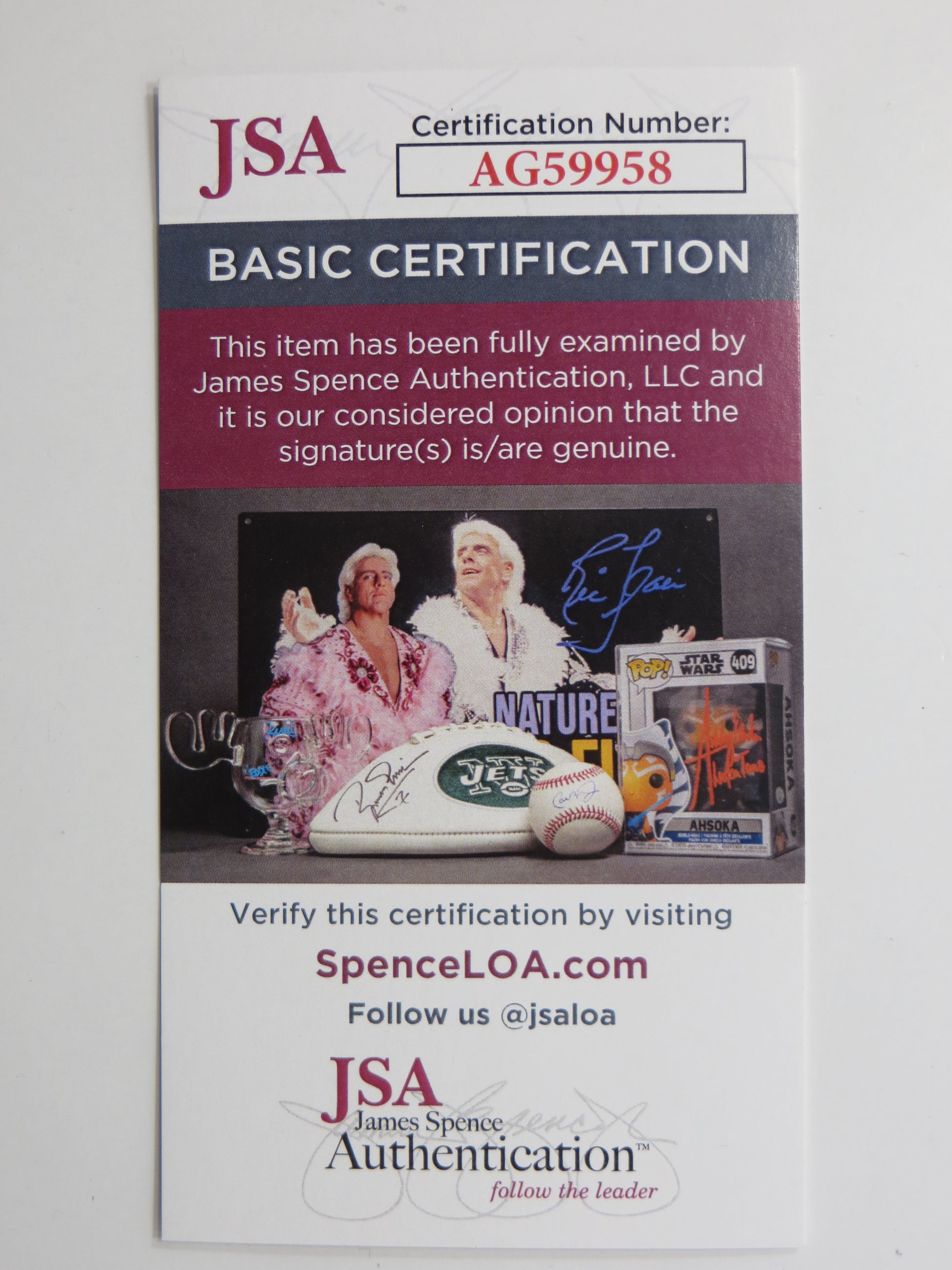 This item comes with a matching numbered sticker to a Certificate of Authenticity card from James Spence Authentication (JSA).
