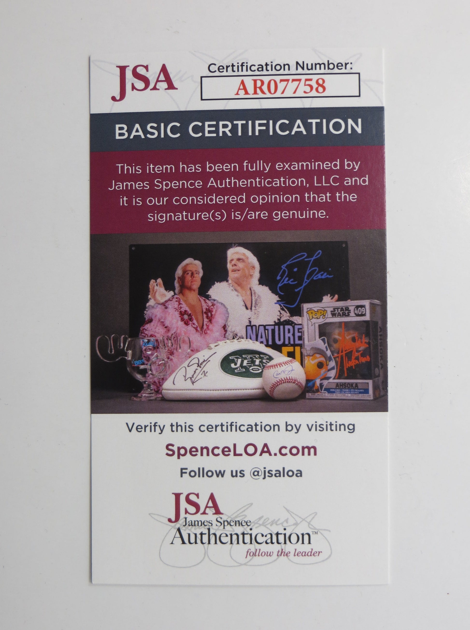 This item comes with a matching numbered sticker to a Certificate of Authenticity card from James Spence Authentication (JSA).