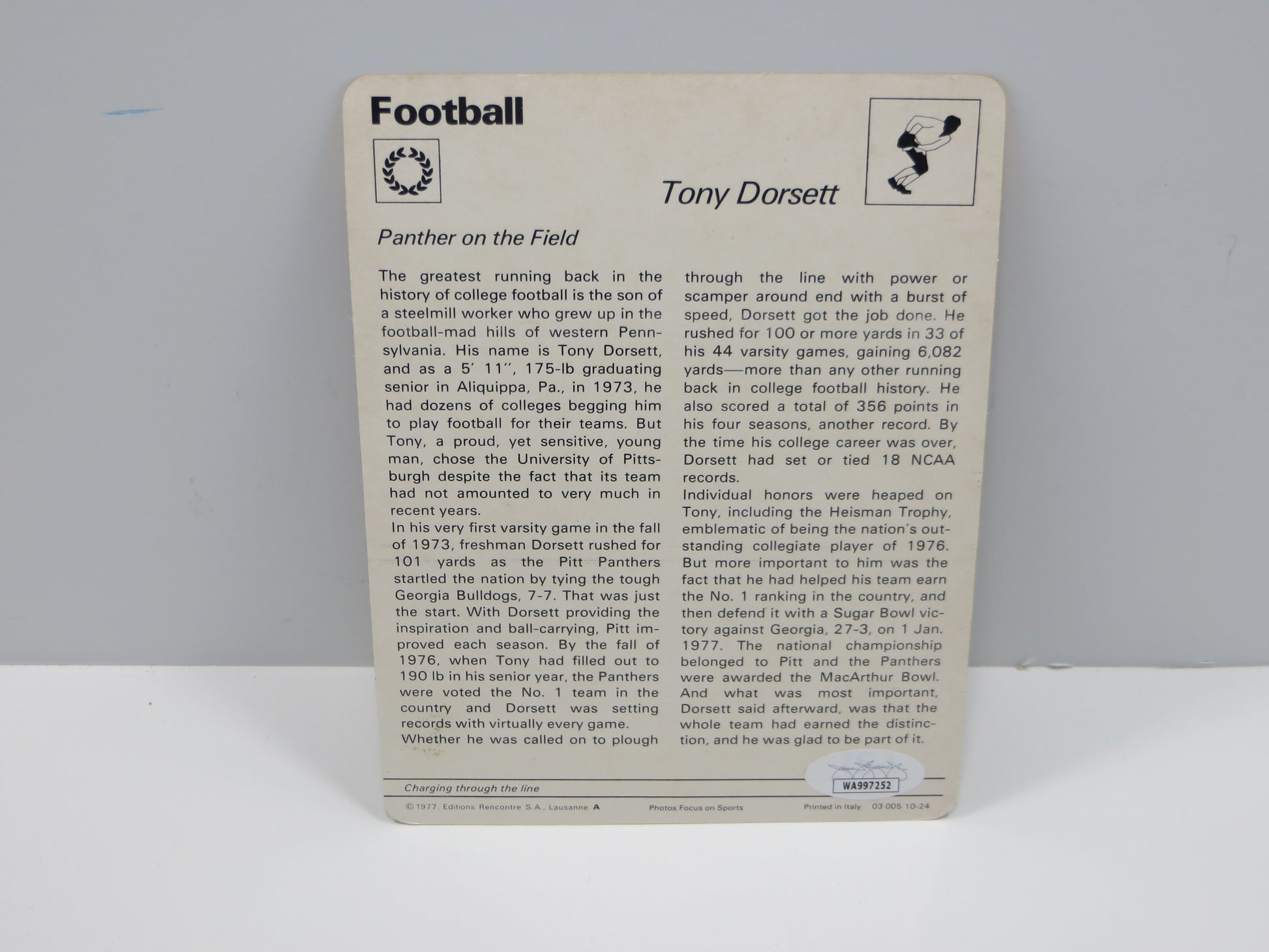 TONY DORSETT SIGNED 1977 SPORTSCASTER CARD #10-24 PHOTO PITT Cowboys JSA